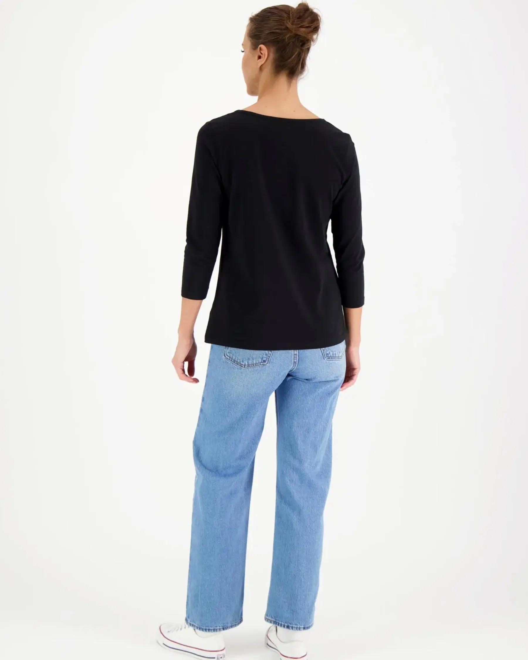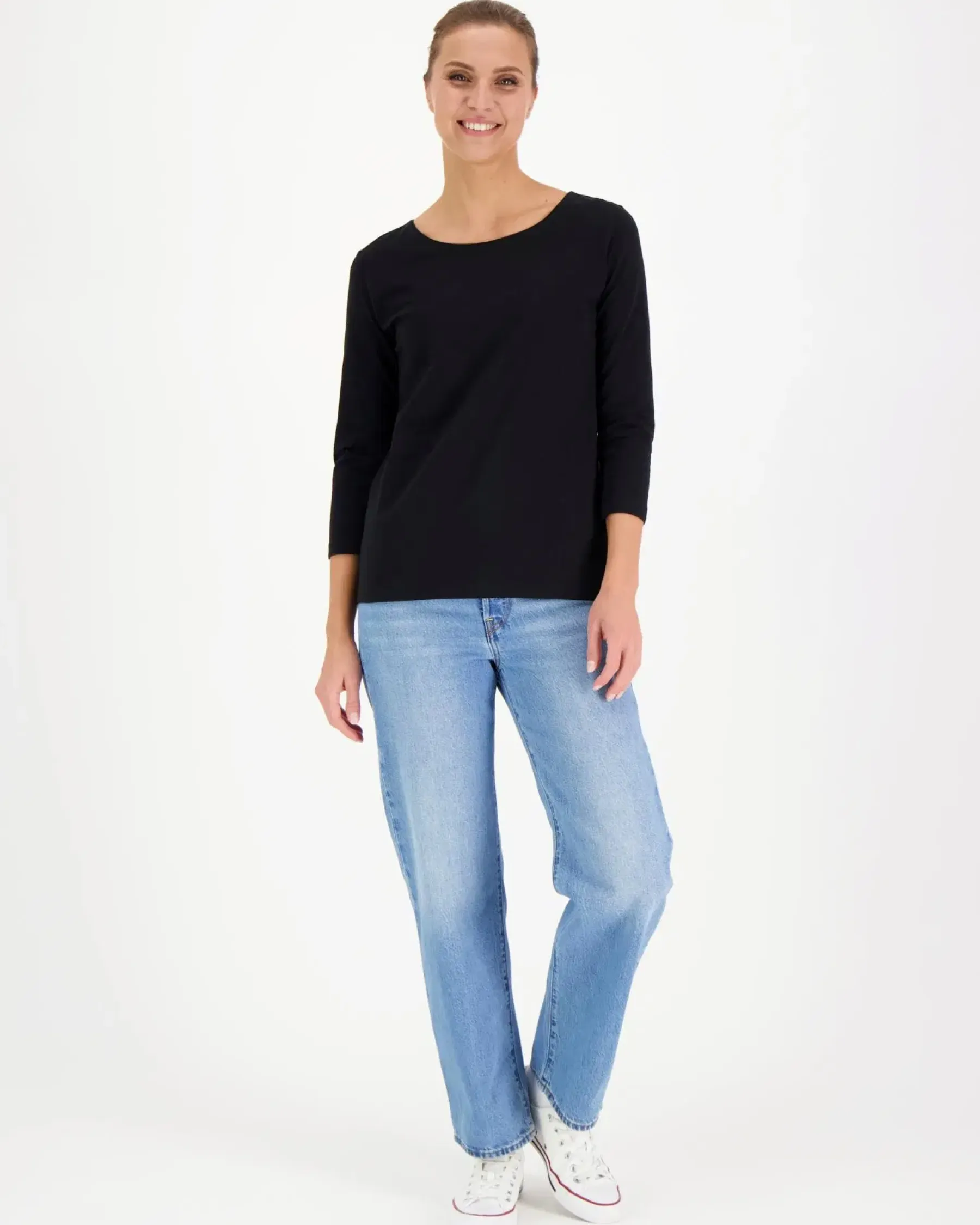 Trikoopusero, jossa vajaat 3/4 pituiset hihat. Kaunis venepääntie. Materiaalina kevyt ja joustava GOTS sertifioitu puuvilla elasthan.