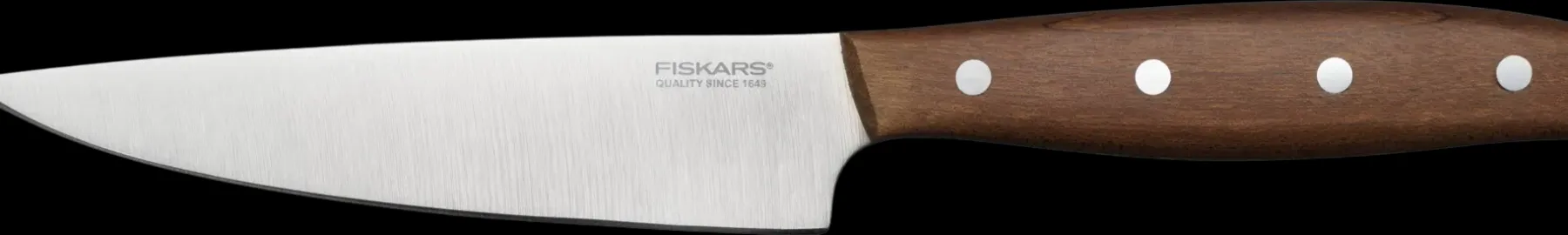 Perinneresepteillä syntyy autenttisia hetkiä, kun käytössä on pieni Fiskars Folken -kokinveitsi 12 cm. Tässä yleisveitsessä on pieni monenlaiseen leikkaamiseen soveltuva terä. Pelkistettyjen ja ajattomien Folken-veisten valmistukseen on käytetty vain olennaisimpia, vähäeleisiä materiaaleja, jotka takaavat aikaa kestävän ruoanvalmistuskokemuksen. Veitset on valmistettu saksalaisesta ruostumattomasta teräksestä taaten Fiskarsille ominaisen laadun ja tarkkuuden. Folken-veisten kahvat ovat vastuullisesti hankittua FSC®-sertifioitua vaahteraa (FSC C108780), mikä antaa niistä jokaiselle uniikin, luonnollisen ilmeen. Mukava, ergonominen kahva tarjoaa helppoutta ja hyvän hallinnan tunnun leikatessa. Folken-veisten liuottamista tai veteen upottamista tulee välttää. Pitkäikäisyyden takaamiseksi ne tulee pestä käsin ja kuivata heti käytön jälkeen.