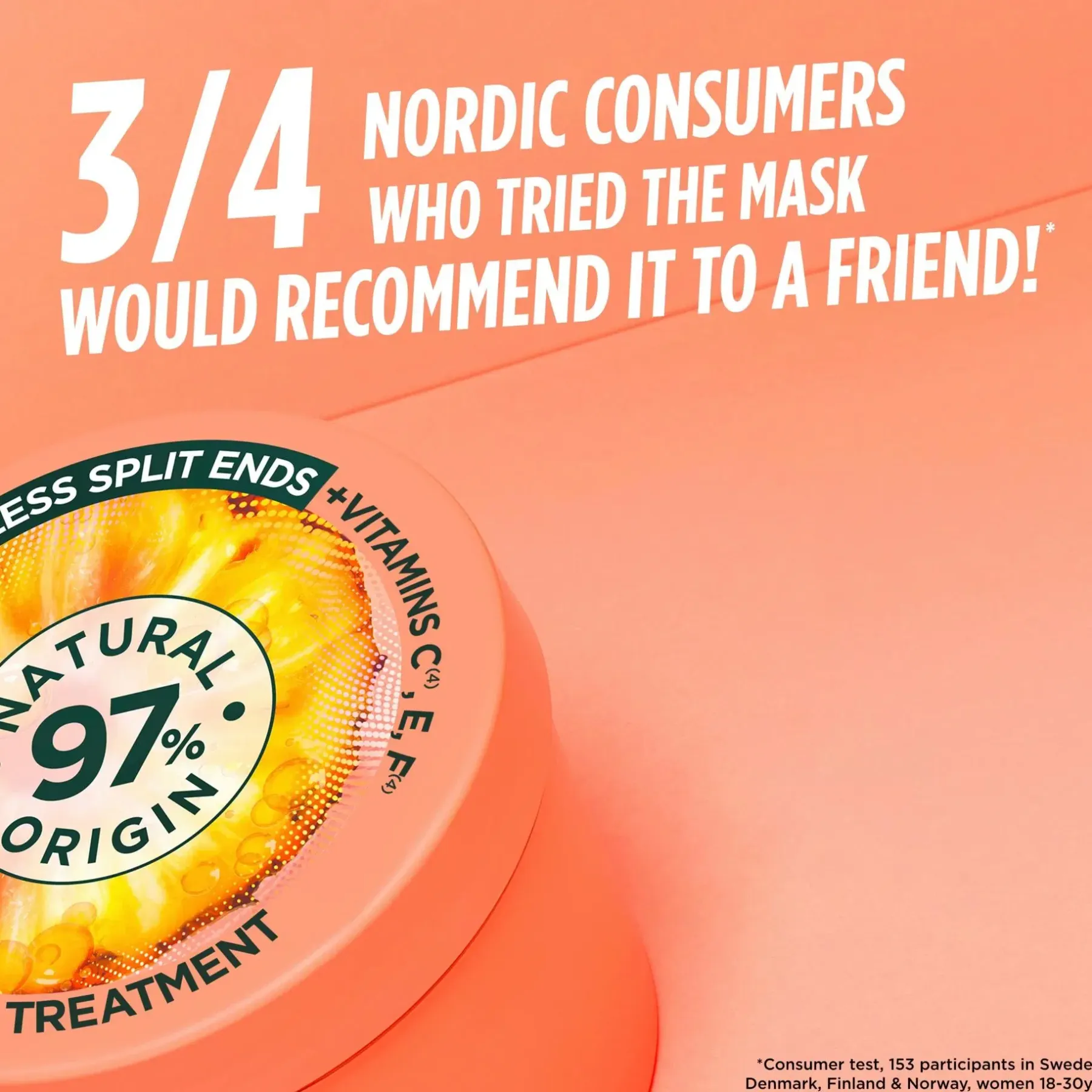 *Mittaustulos käytettäessä Fructis Hair Food Pineapple ’shampoota ja hiusnaamiota.