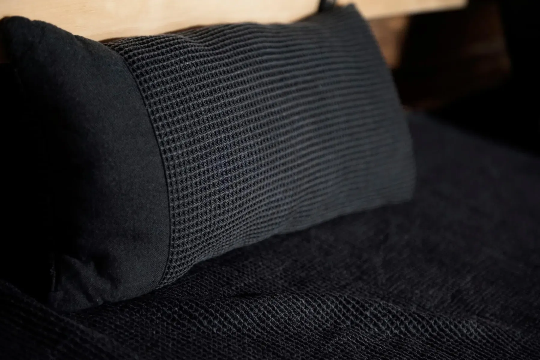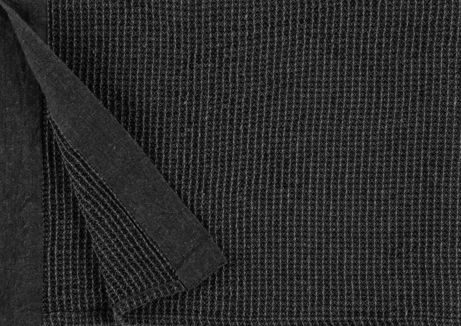 Lokoisa, pitkä laudeliina chambray-kanttauksilla. Kierrätysmateriaalista valmistetuille Kenno-saunatekstiileille on ominaista kankaan pehmeys ja eloisa tekstuuri. Varovainen vesipesu 60 astetta.