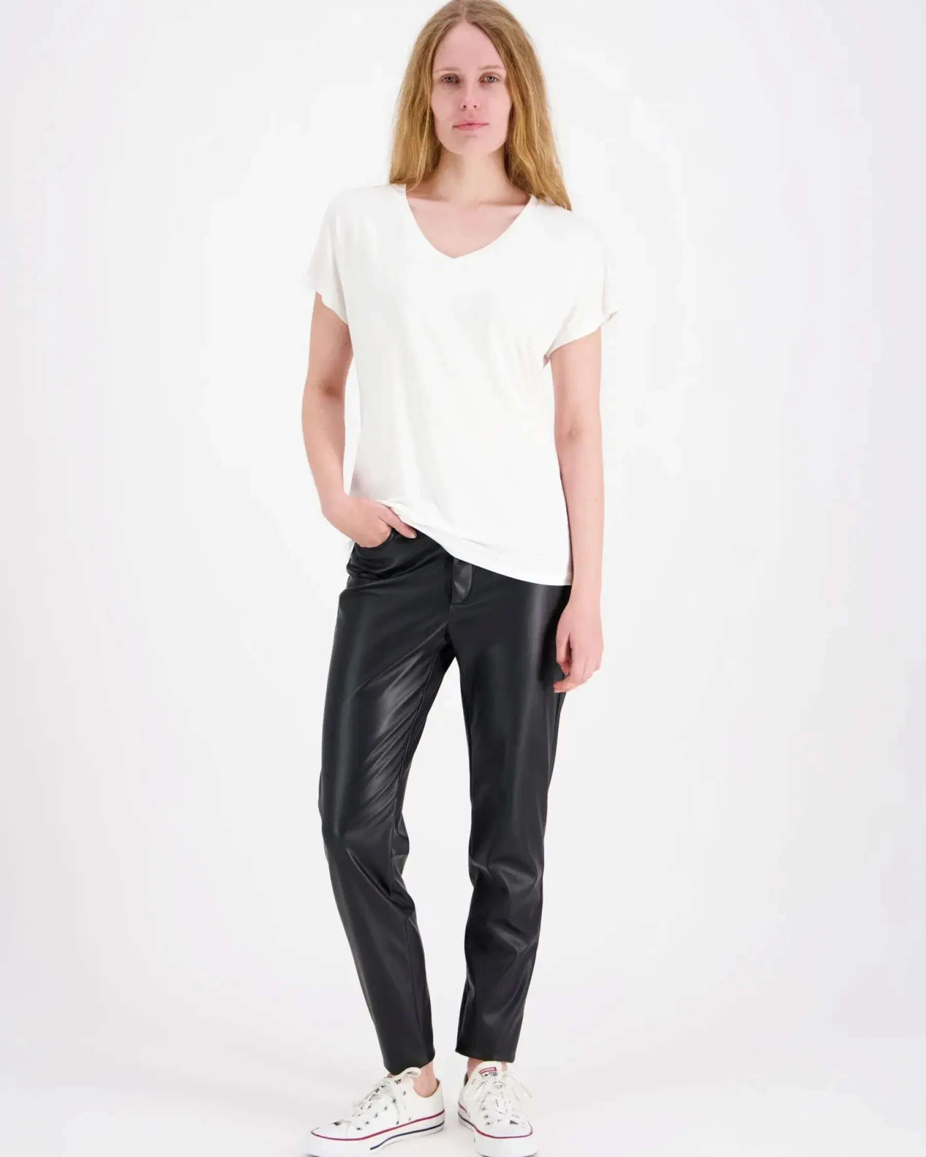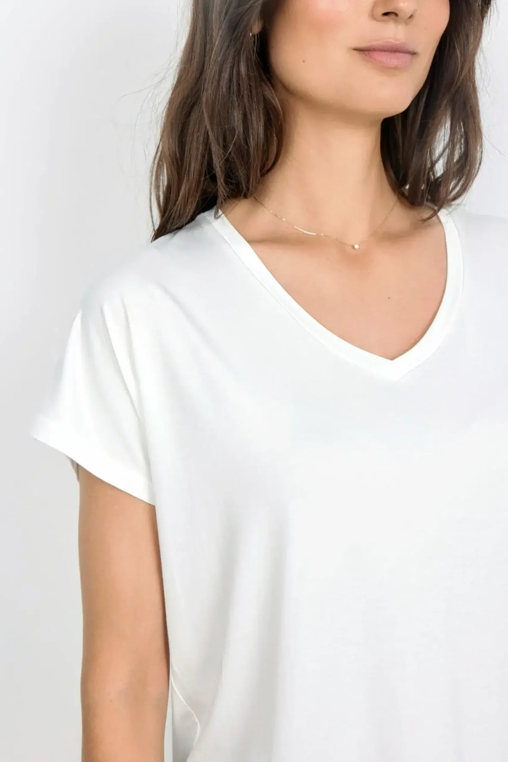 Soyaconcept SC-Marica 32 tarjoaa täydellisen yhdistelmän mukavuutta ja tyyliä. Tämä lyocell-sekoituksesta valmistettu perus-t-paita on suunniteltu arjen monipuoliseen käyttöön. Sen pehmeä v-pääntie ja lyhyet hihat tekevät siitä miellyttävän käyttää, samalla kun normaali istuvuus takaa, että se sopii eri vartalotyypeille. SC-Marica 32 t-paita on vaatekaapin peruspilari, joka on helppo yhdistää erilaisiin asukokonaisuuksiin. Täydellinen valinta jokaiselle, joka arvostaa laadukkaita ja monikäyttöisiä vaatteita.