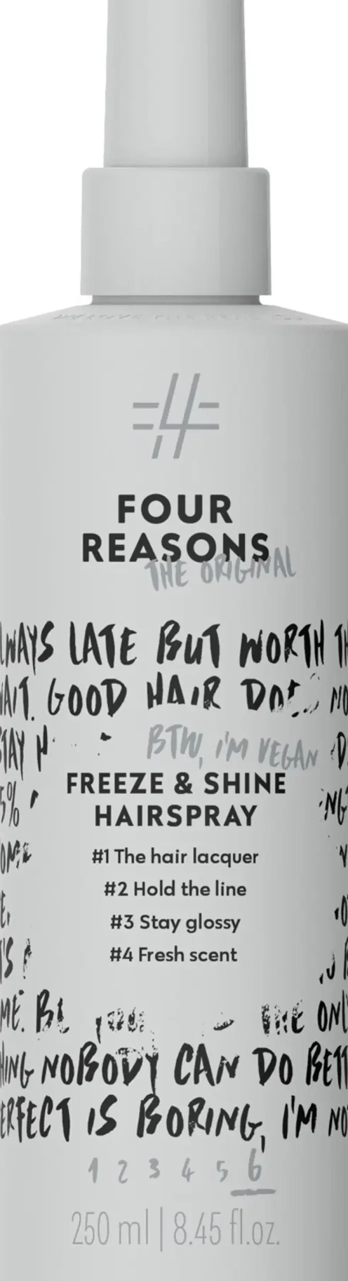 Supervahva Four Reasons Original -hiuslakka antaa voimakasta, järkkymätöntä tukea kampaukseen kuin kampaukseen. Pitkäkestoinen pito ja kiilto, joka kestää koko vuorokauden. Sisältää hoitavista ominaisuuksistaan tunnettua pantenolia.