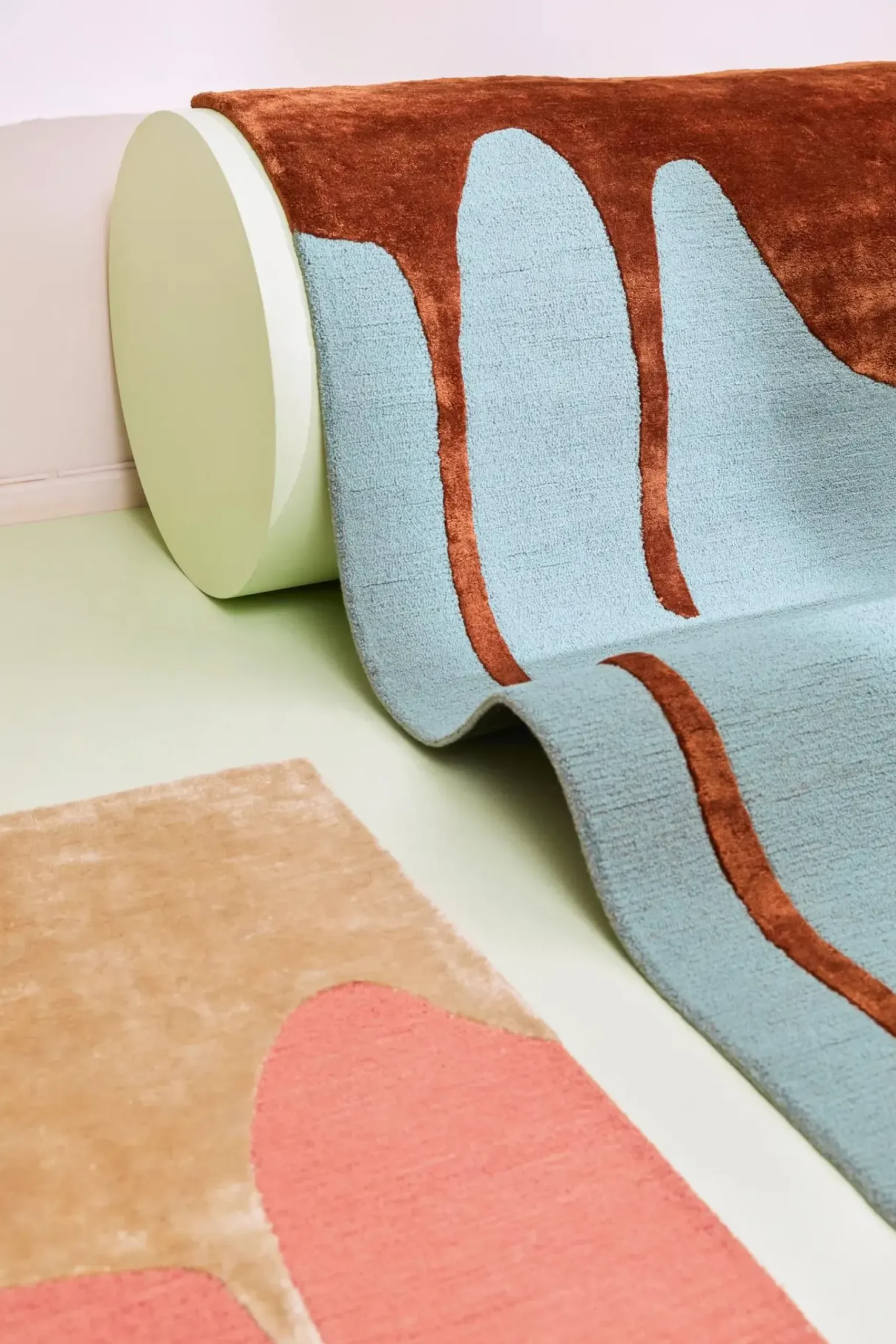 Sula yhdistää vaaleansinistä tuftattua villaa ylelliseen, silkinpehmeästä tummanruskeasta tencelistä tufattuun valuvaan kuvioon. Tämä kahden eri materiaalin, mattapintaisen villan sekä kiiltävän tencelin yhdistelmä tuo mattoon leikkisää eloa ja korostaa maton värejä tehden niistä intensiivisemmät. Matossa on käytännöllinen puuvillainen pohjaus, mikä tekee matosta jämäkän.