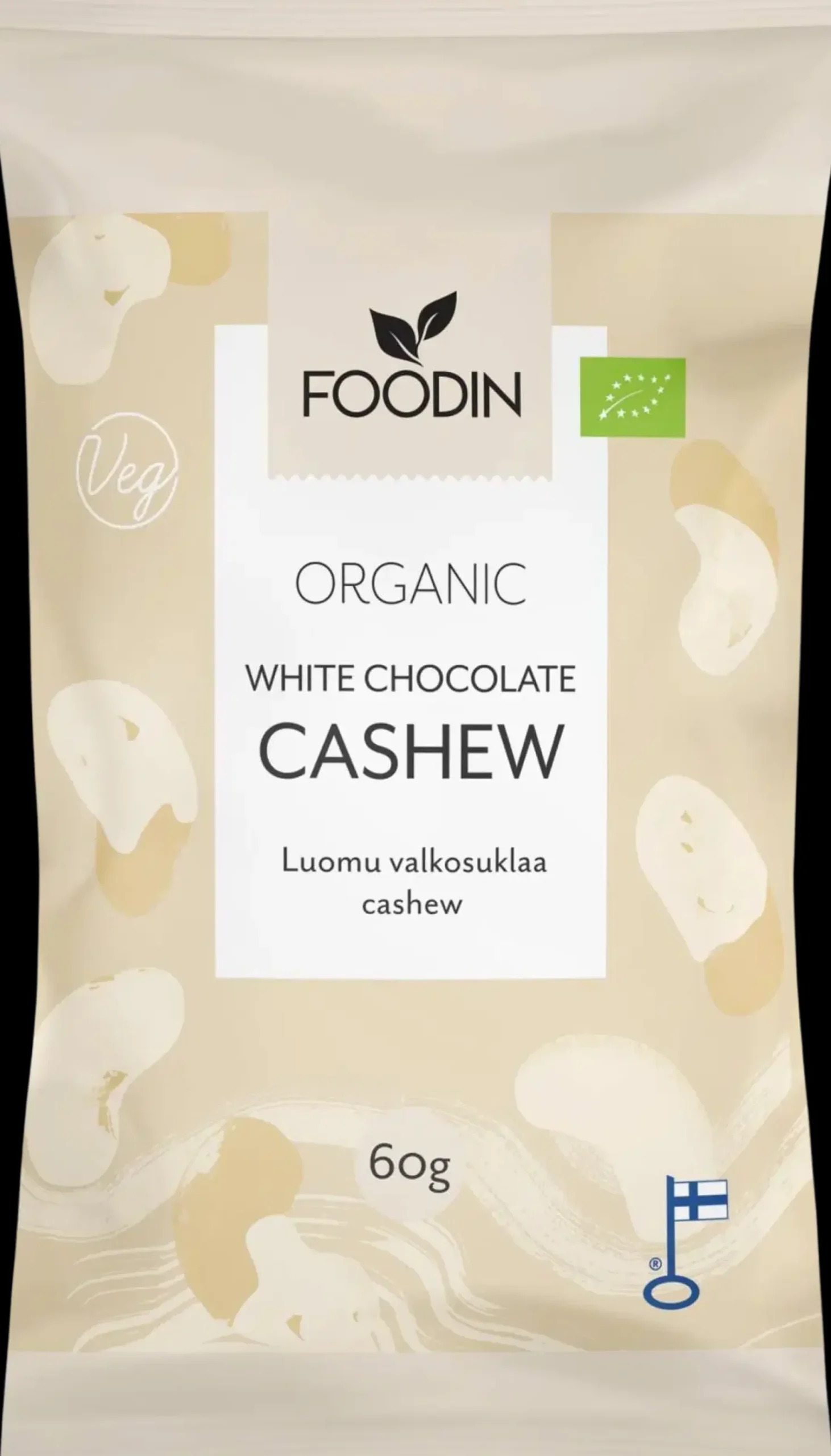 Kermainen luomucashewpähkinä kietoutuu suussasulavaan valkosuklaakuorrutteeseen muodostaen klassikkoherkkujen makuparin. Täyteläinen ja ihanasti rouskuva herkku ihastuttaa kerta toisensa jälkeen. Valkosuklaacashew sopii naposteltavaksi sellaisenaan, mutta se sopii erinomaisesti myös osaksi leivontaa ja jälkiruokien koristelua.