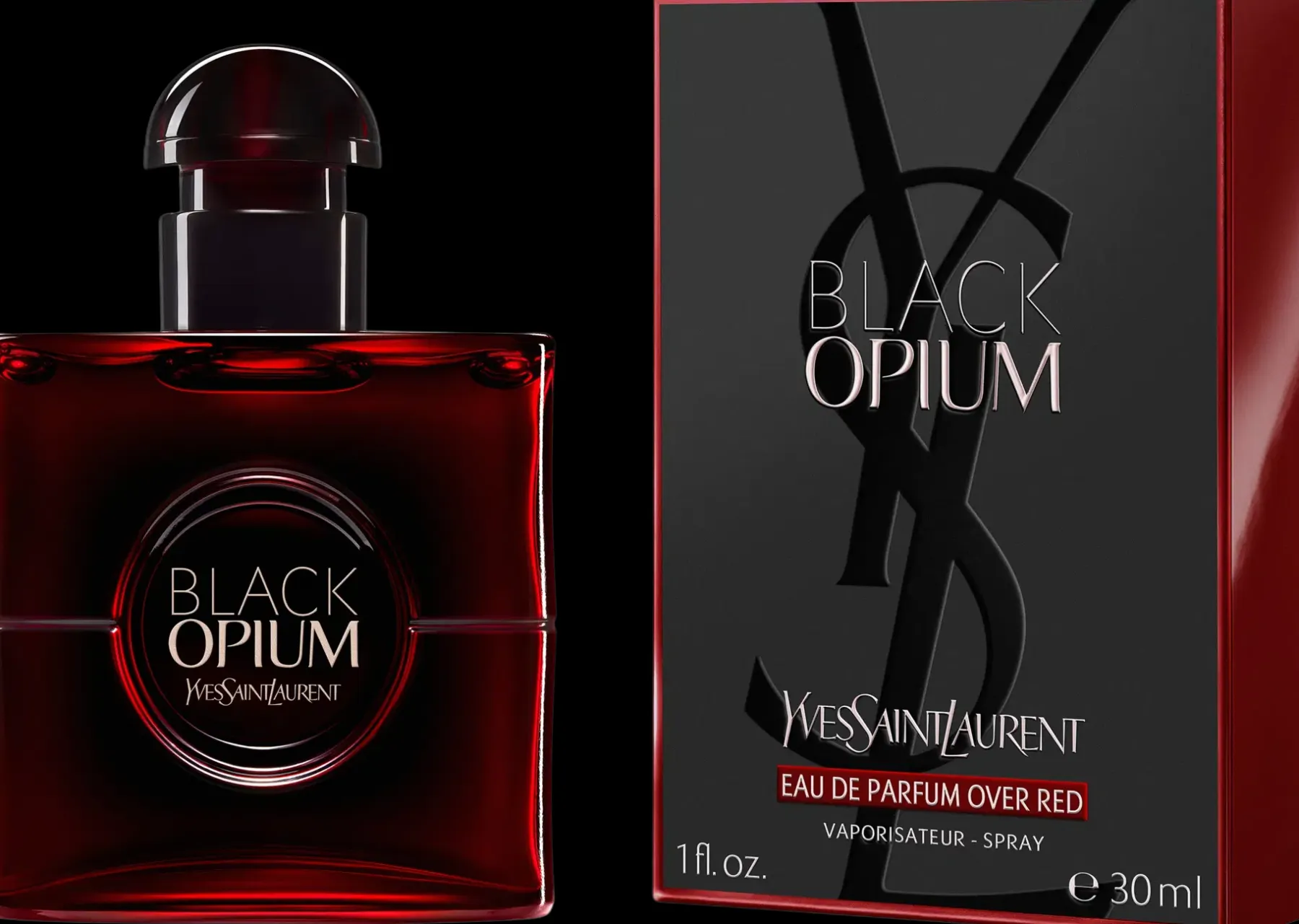 EYEGASMIC-pullo. Mustaa punaisella, punaista mustalla. Syvän tumma kivi, jossa on punaisia sävyjä, hypnotisoi meidät värikkäällä ylevyydellään. Äärimmäisen kallisarvoinen & couture. Se kuvastaa Yves Saint Laurentin ylellisyyttä, rohkeutta, perintöä ja ylevyyttä.