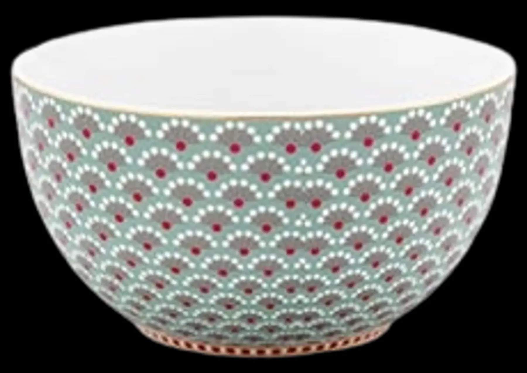 Pip Studion Blooming Tales-kokoelman kulhoa koristaa sinisävyinen kuviointi. Kulho on posliinia ja sen reunassa on kultaus.