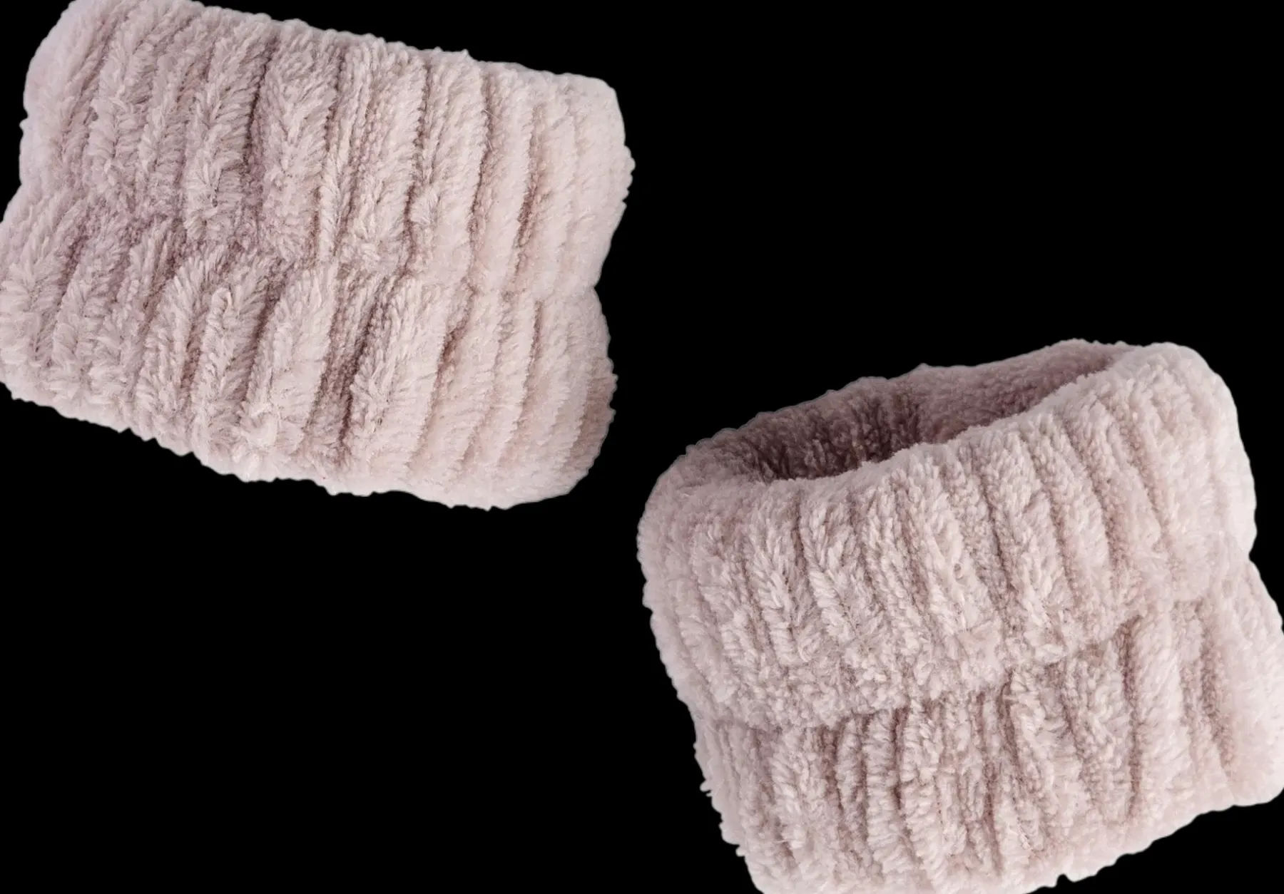 Pehmeät ja pörröiset rannekkeet kasvojen pesun avuksi. Estää veden valumisen käsivarsia pitkin. Joustavan kuminauhan ansiosta miellyttävä käyttää.