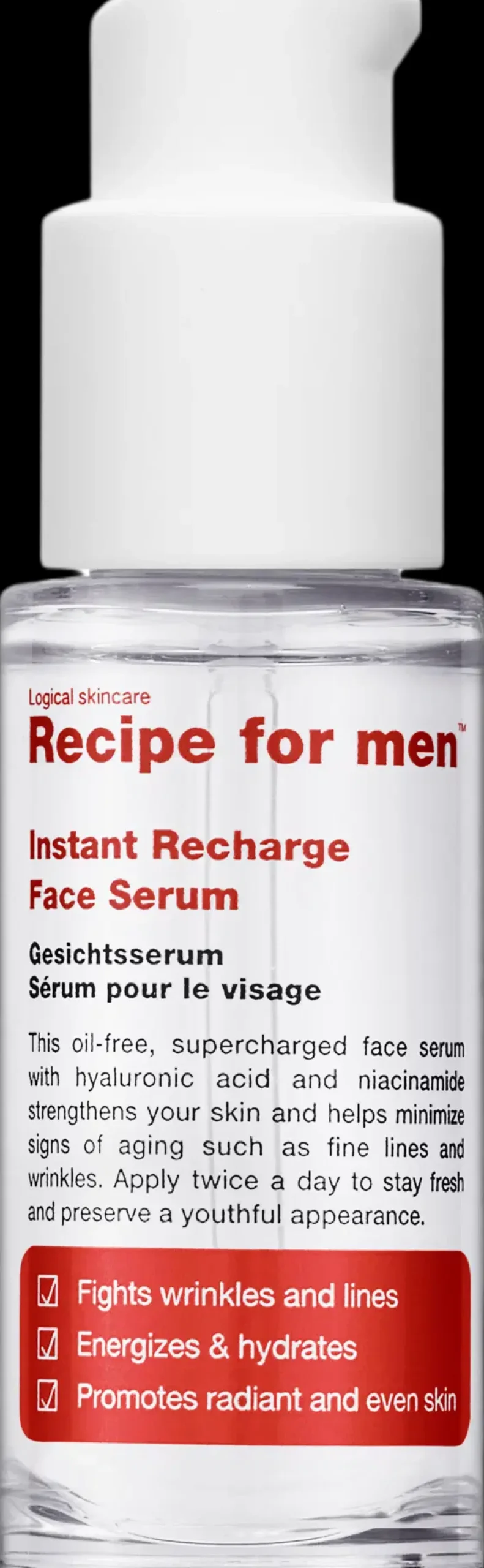 Erityisesti miesten iholle suunniteltu kasvoseerumi, joka tarjoaa useita hyötyjä yhdessä seerumissa – anti-ageing, kosteuttava, sitova ja tasoittava.
