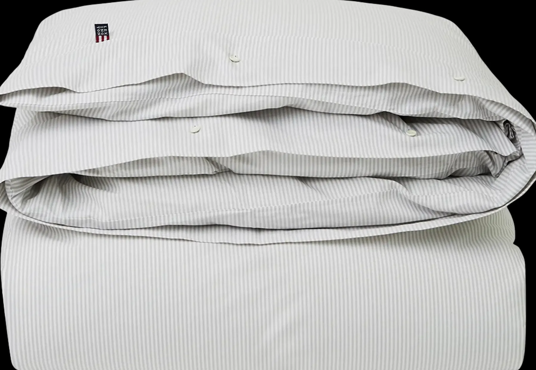 Tuo makuuhuoneeseesi raikasta Uuden Englannin tunnelmaa tällä valkoisen ja beigen sävyisillä raidoilla kuvioidulla vuodevaatesarjalla, joka on valmistettu kevyestä ja hengittävästä puuvillapopliinista. Kangas on valmistettu imukykyisestä popliinista ja viimeistelty klassisilla Dobby-raidoilla, mikä tekee kokonaisuudesta sekä tyylikkään että ajattoman. Materiaalin rypyttömyys ja kestävyys tekevät siitä vaivattoman hoitaa. Hengittävä popliini pitää olosi mukavana ja viileänä yön aikana. OEKO-TEX®-sertifiointi takaa, että tuote on turvallinen eikä sisällä haitallisia aineita. Viimeistele kokonaisuus yhteensopivalla tyynyliinalla.