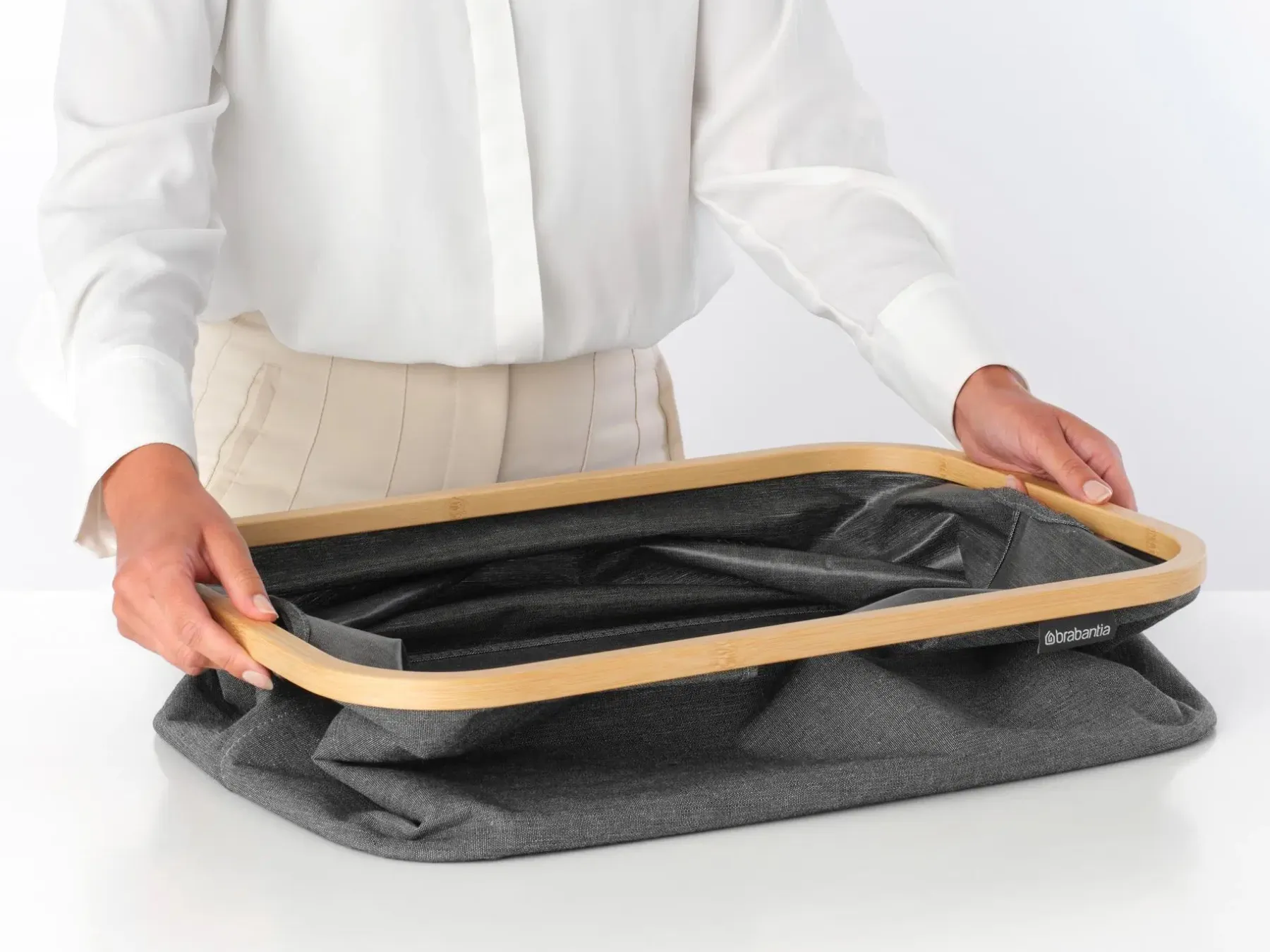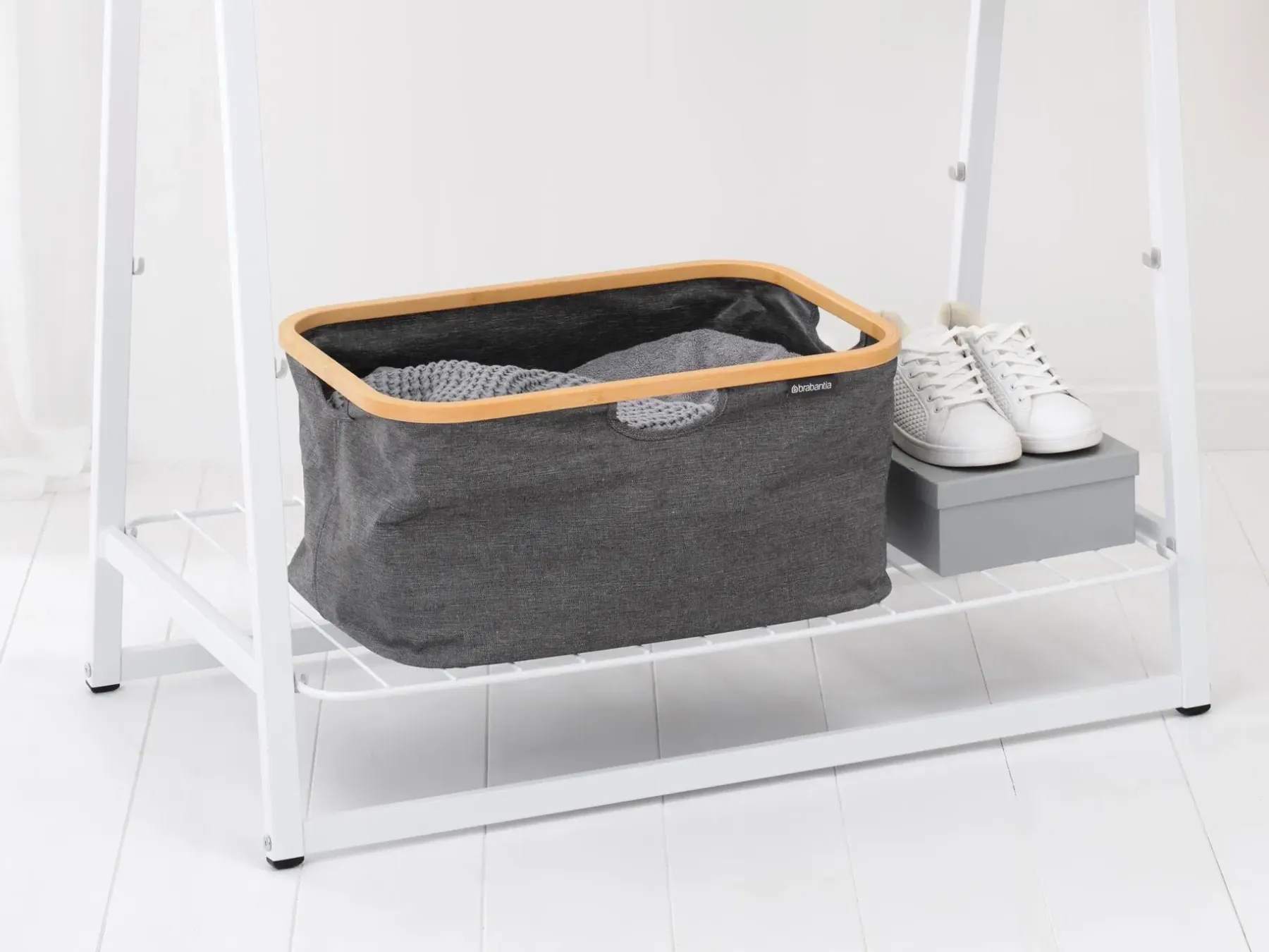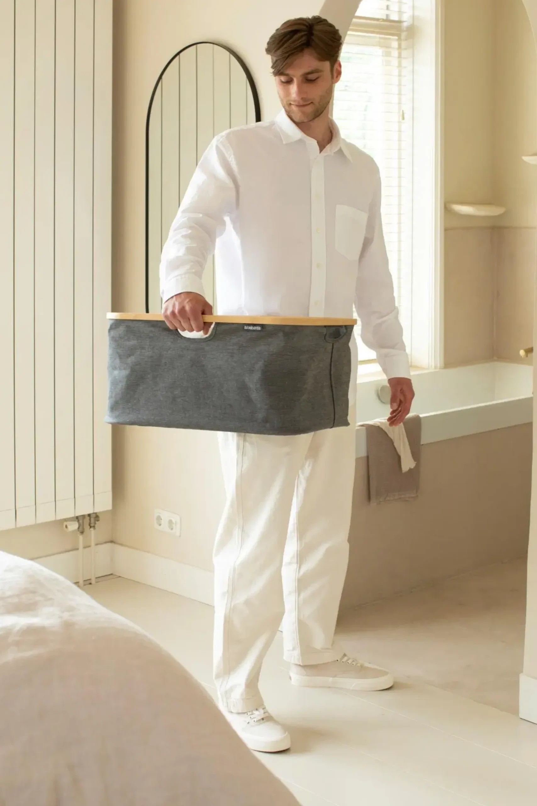 Todellinen tilansäästäjä! Tähän Brabantian kokoontaittuvaan pyykkikoriin mahtuu koneellinen märkää tai kuivaa pyykkiä, mutta se ei itse vie juurikaan tilaa. Se voidaan taittaa kokoon hetkessä, se on helppo puhdistaa ja sitä voidaan käyttää myös papereiden tai lelujen säilytyslaatikkona. Kokoontaittuva ja rakastettava!