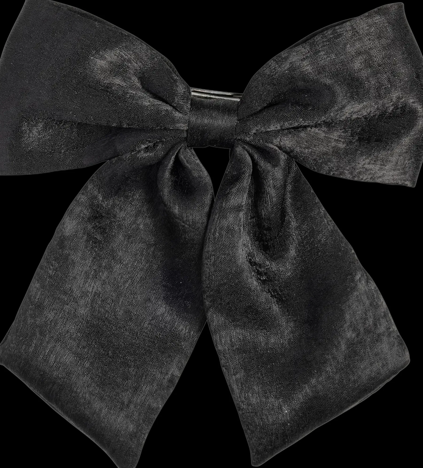 Juhlava, musta rusettihiussolki satiinia. Hiussoljen leveys n. 14 cm. Materiaali kangas, metalli.