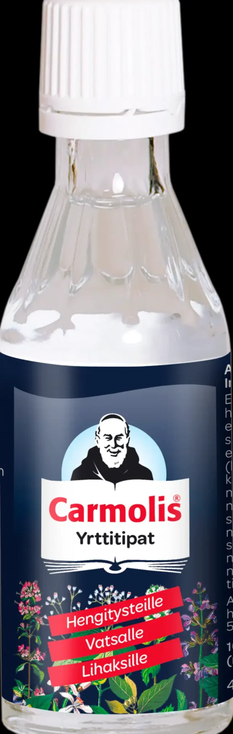 Aidot ja oikeat, perinteisen 1600-luvulta peräisin olevan luostarireseptin mukaan valmistetut Carmolis Yrttitipat sisältävät eteerisiä öljyjä yhteensä 11 valikoidusta yrtistä. Tehon perustana ovat piparminttu (mentoli), laventeli, kaneli, neilikka, sitruunamelissa, muskotti, salvia, sitruunaruoho, anis, sitruuna ja timjami. Yrttien yhdistelmä tekee siitä ainutlaatuisen ja käyttötavoiltaan erittäin monipuolisen. Carmolis Yrttitipat sopivat hengitysteille, vatsan avuksi ja ulkoisesti iholle ja lihaksille.