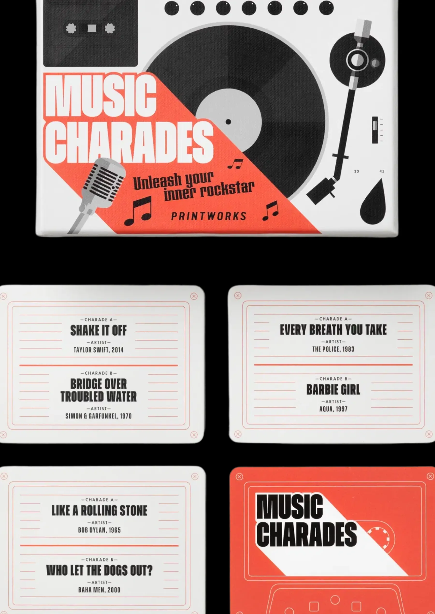 Tässä viihdyttävässä pelissä pelaajat eläytyvät kappaleisiin tai artisteihin elein ja ilmein – ilman sanoja! Kauniisti kuvitettujen, 100 % FSC-sertifioidusta paperista valmistettujen korttien ansiosta peli tarjoaa hauskan ja mukaansatempaavan haasteen kaikille musiikin ystäville.