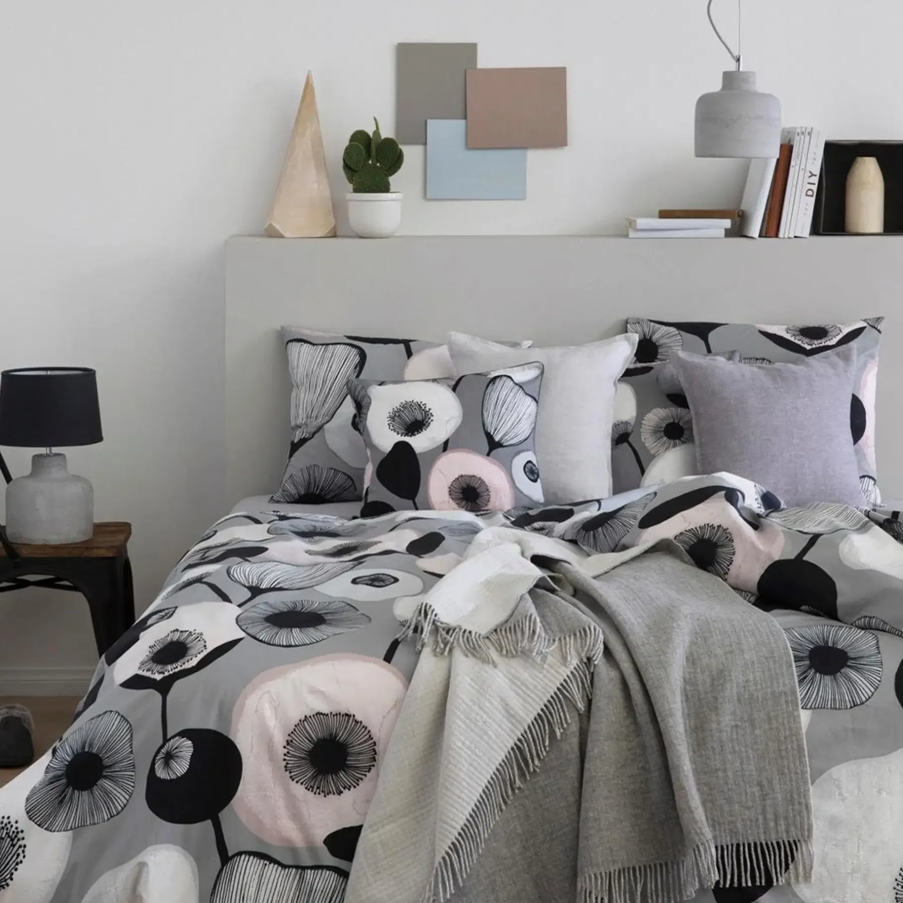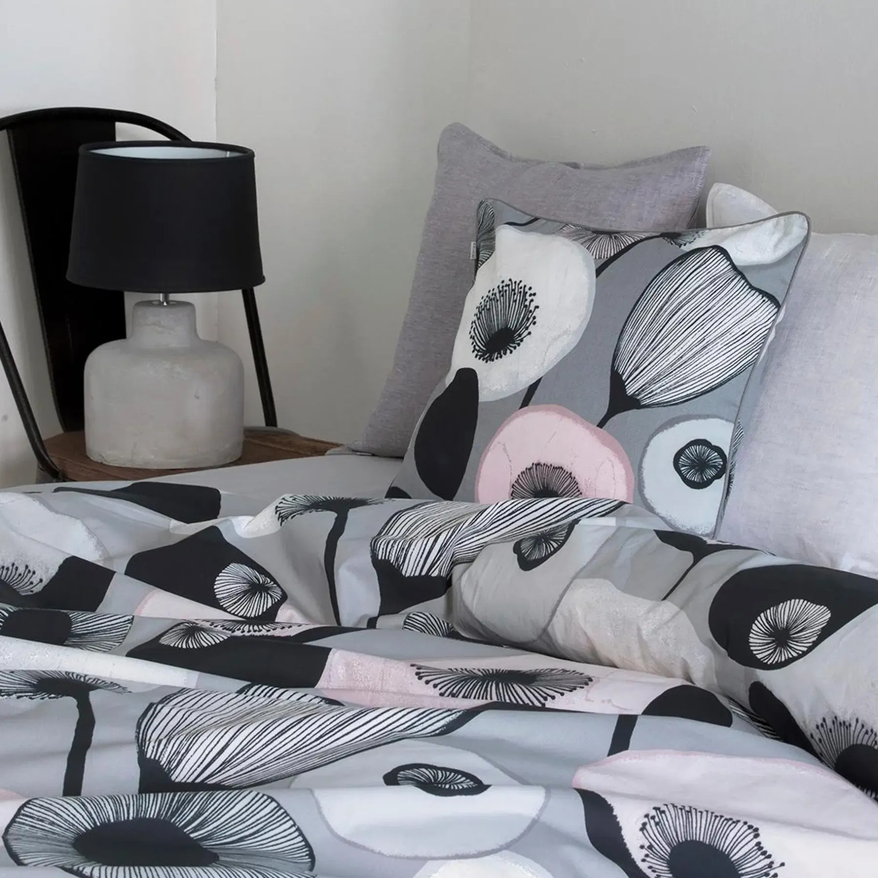 Tyynyillä voi sisustaa kodin eri vuodenaikojen mukaan ja ne uudistavat huoneiden ilmeen. Klassisen kauniiden Basic-mallistojen lisäksi valikoimassa on sesongeittain vaihtuvat tyynyt. Kaikki tekstiilit on tehty laadukkaista materiaaleista puuvillasta, pellavasta ja silkistä. Muotoillaan kosteana, silitys nurjalta puolelta, voi kutistua ens. pesussa 8%, pestävä nurinpäin käännettynä, pestävä samanväristen kanssa, tummat värit voivat värjätä vaaleita materiaaleja