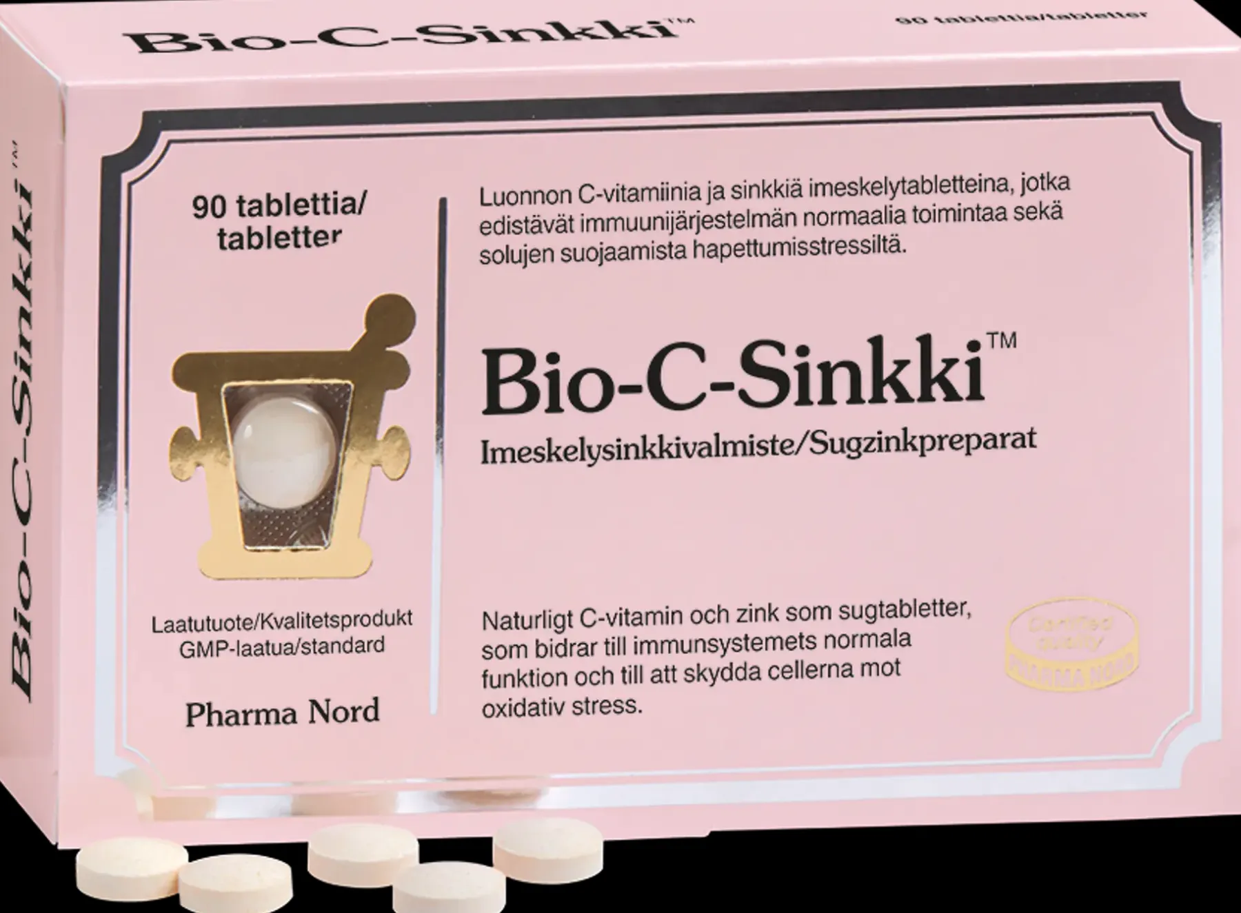 Bio-C-Sinkki™ on miellyttävän makuinen imeskelytabletti, joka sisältää orgaanista sinkkiä ja acerolakirsikkauutteesta saatua luonnon C-vitamiinia. Sekä C-vitamiini että sinkki edistävät immuunijärjestelmän normaalia toimintaa ja solujen suojaamista hapettumisstressiltä. Lisäksi C-vitamiini auttaa vähentämään väsymystä ja uupumusta.