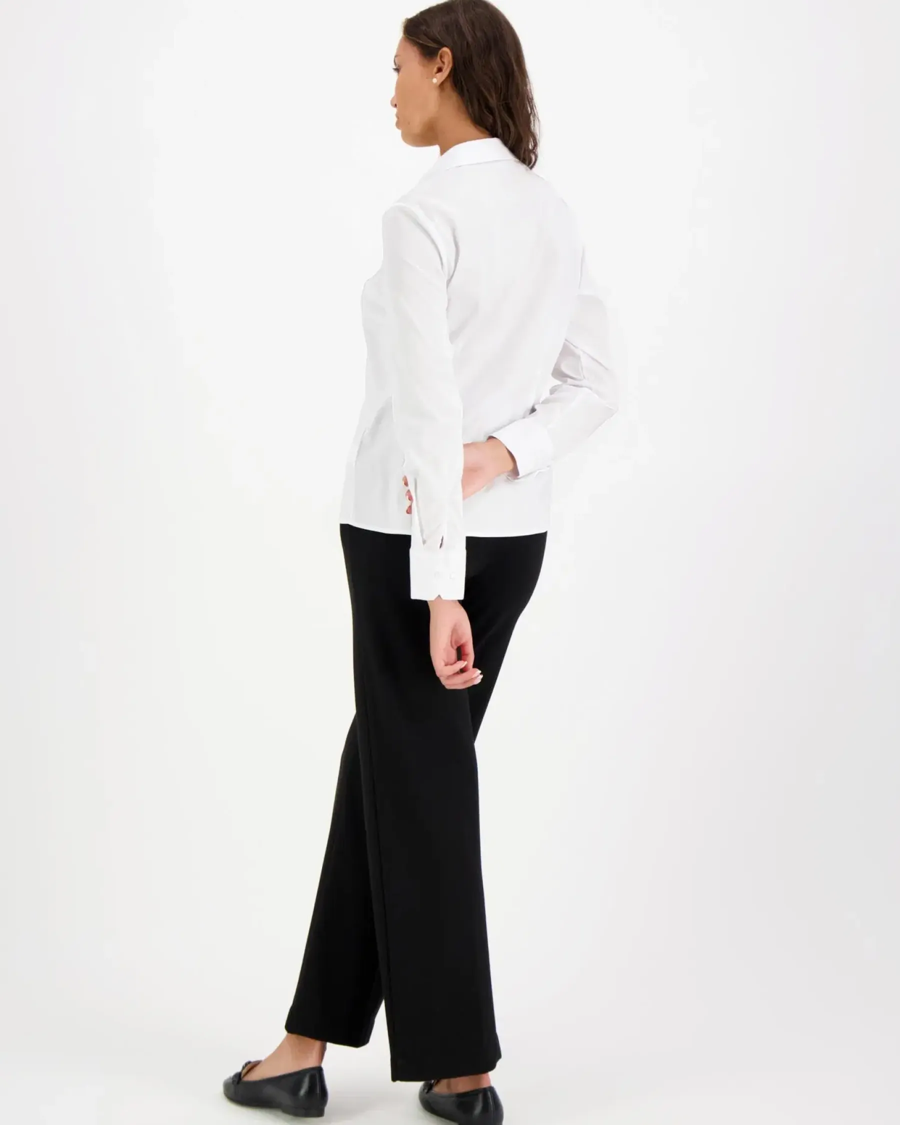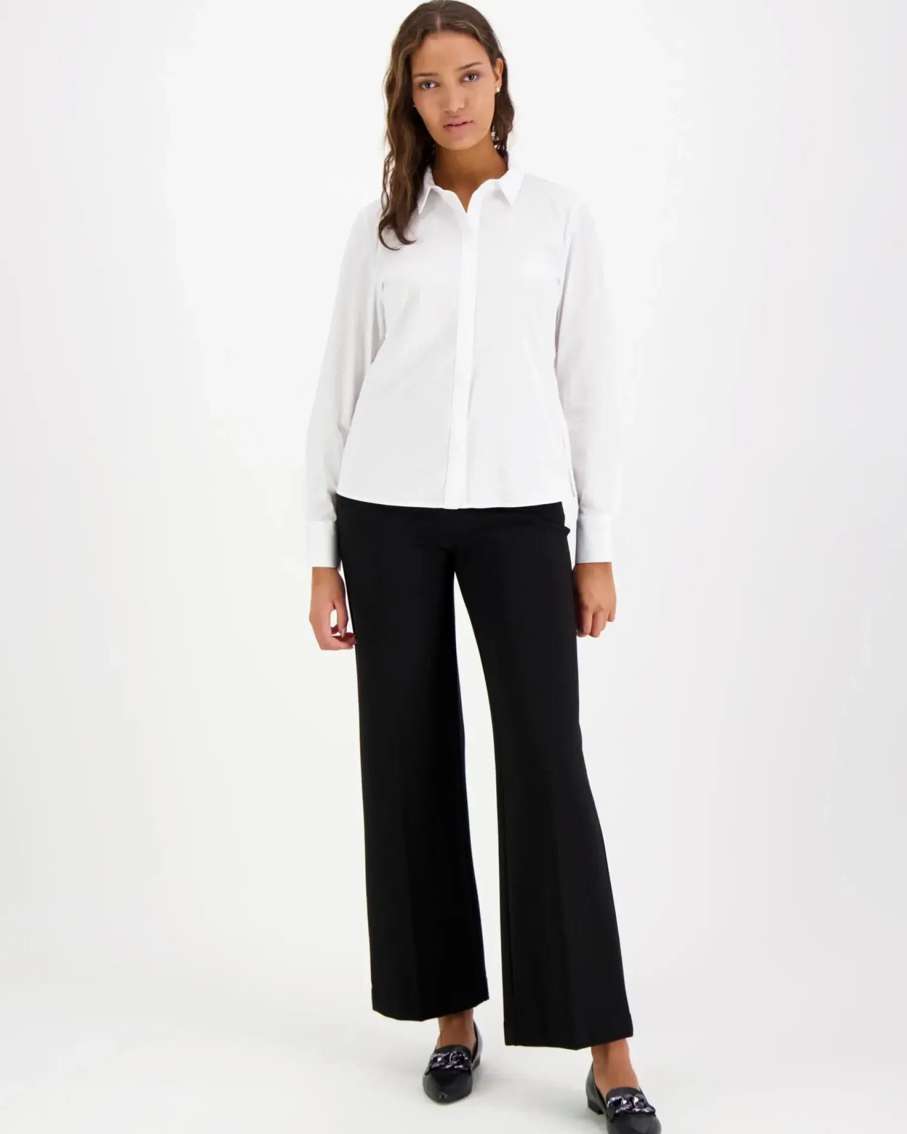 Klassinen, kapealinjainen paitapusero, jossa on piilonapitus. Miellyttävä ja helppohoitoinen materiaali.