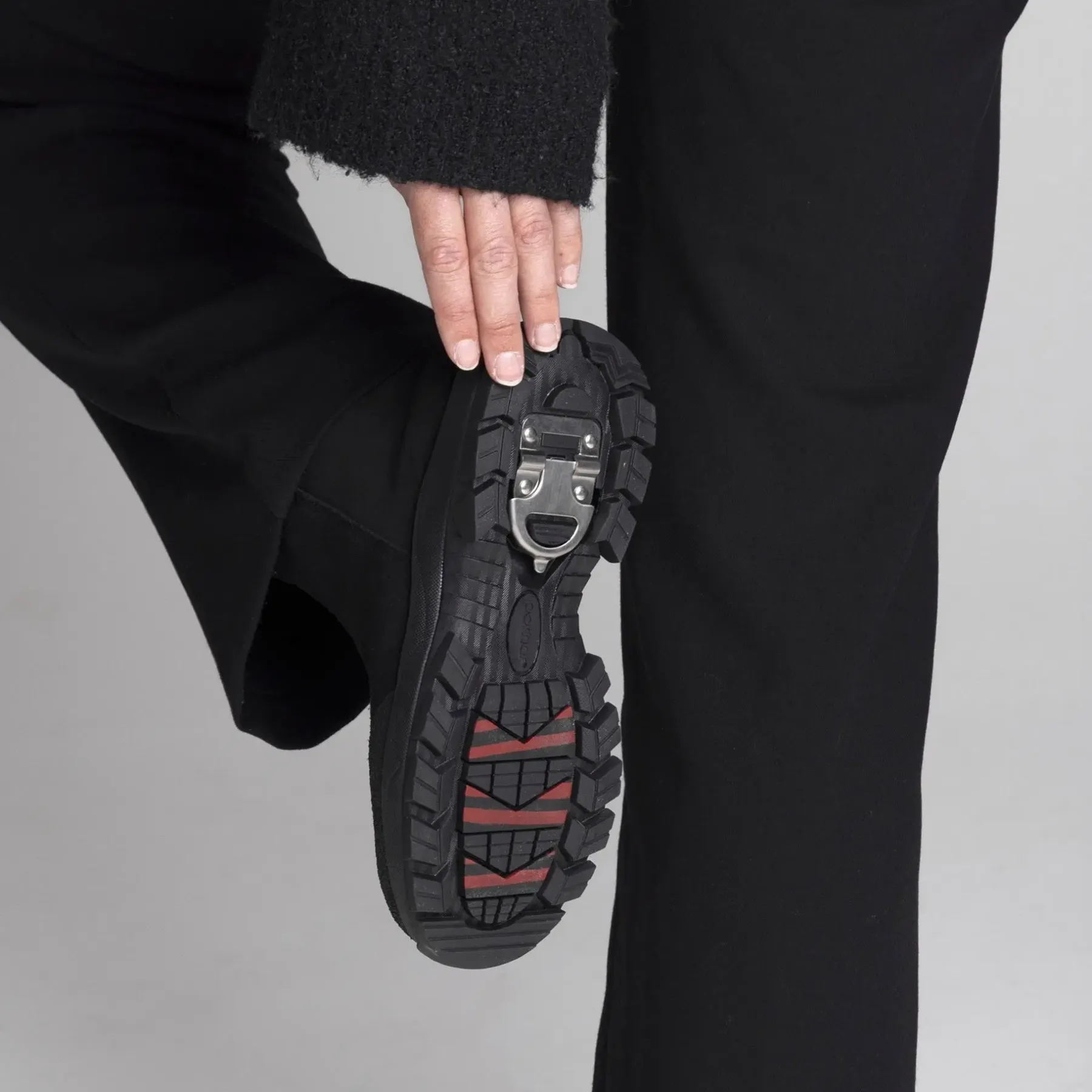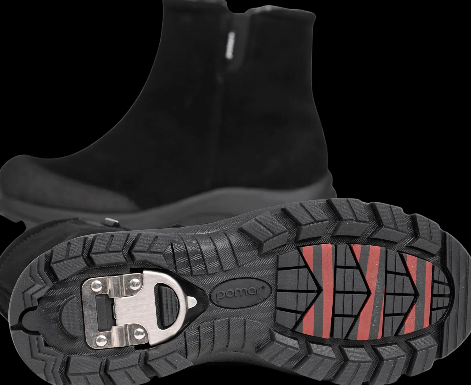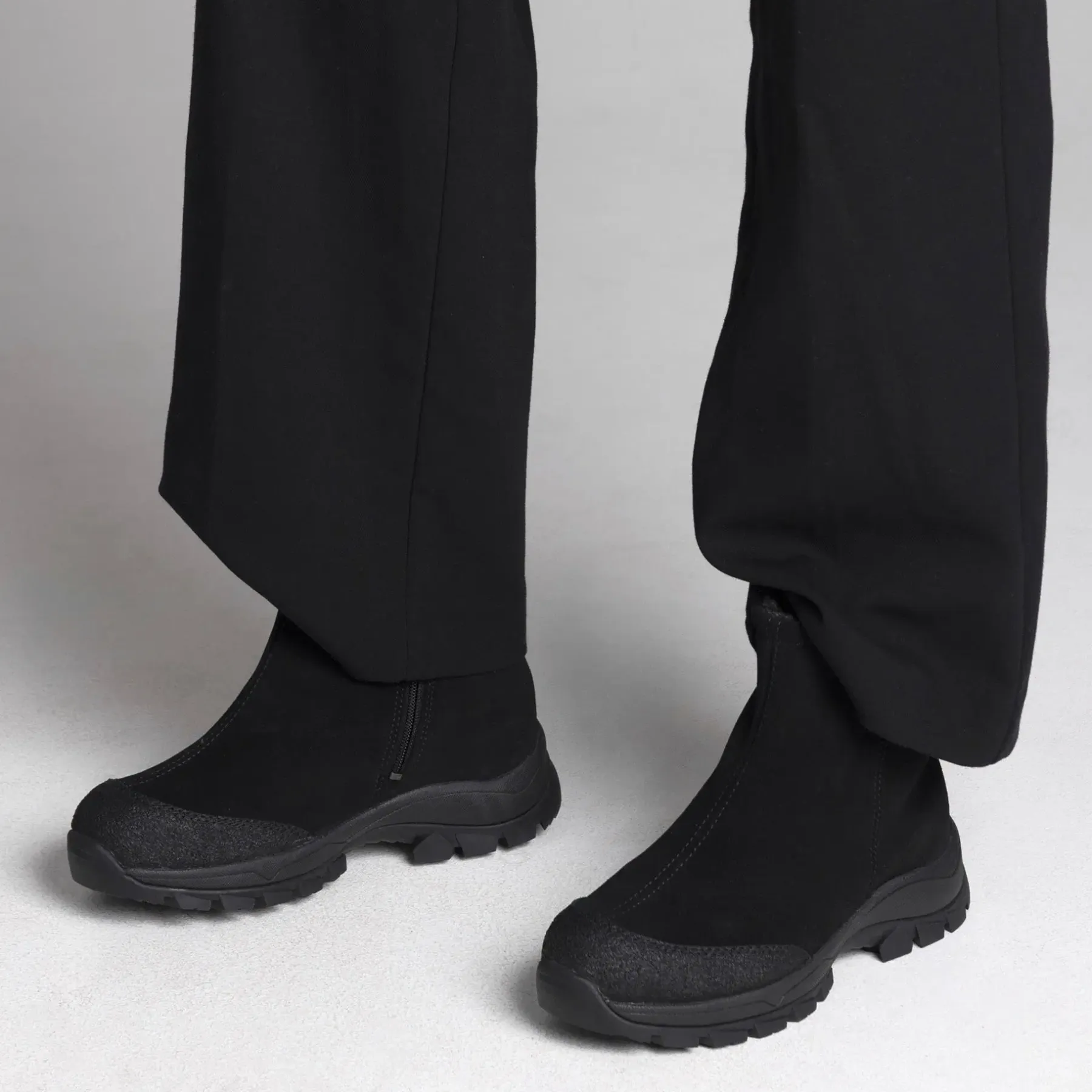 Naisten citynilkkuri kosteutta ja likaa hylkivällä mokkanahka päällisellä, loskasuoja kärjessä, villasekoitevuorit, sivuvetoketju helpottaa kengän pukemista, irrotettava, muotoiltu pohjallinen, TR-kumipohjassa päkiällä pitoalue ja kannassa käännettävä liukueste. Tilava H-lesti.