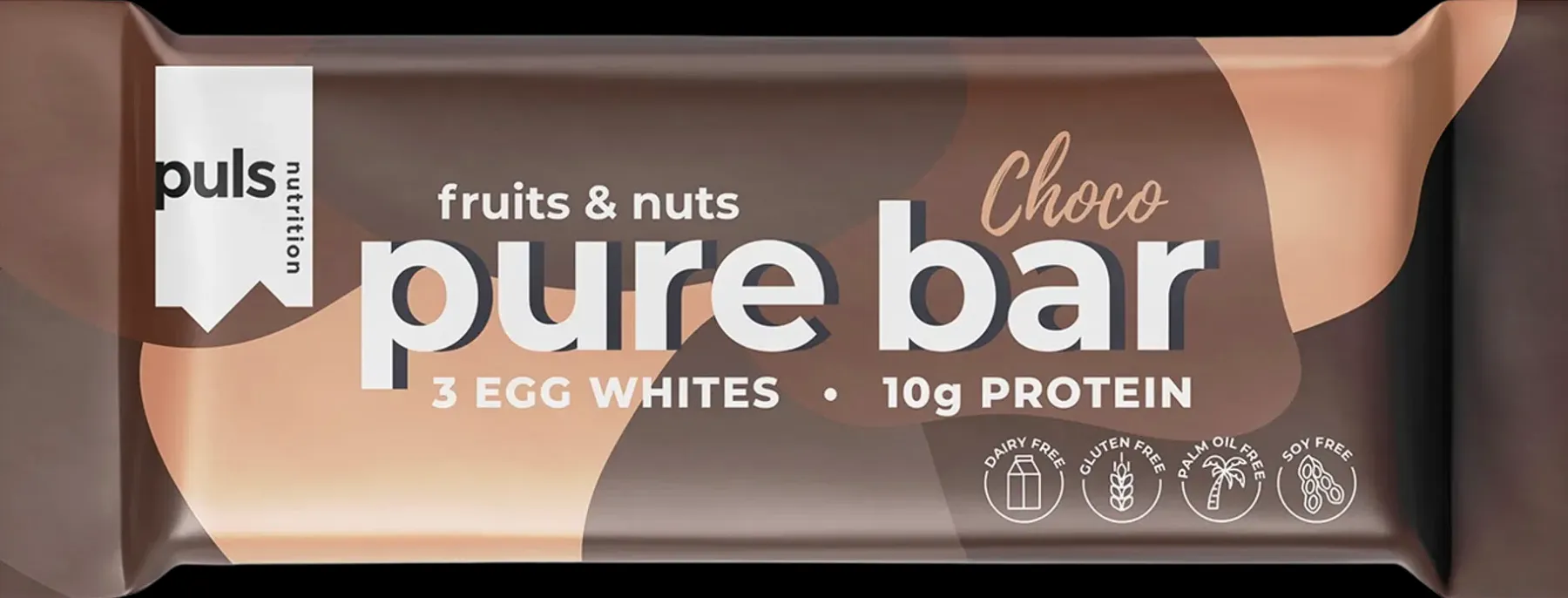 PULS PURE proteiinipatukka on herkullinen runsaskuituinen välipalapatukka, joka sisältää vain aitoja ainesosia. Proteiinin lähde on munanvalkuainen. Gluteeniton, maidoton, soijaton.