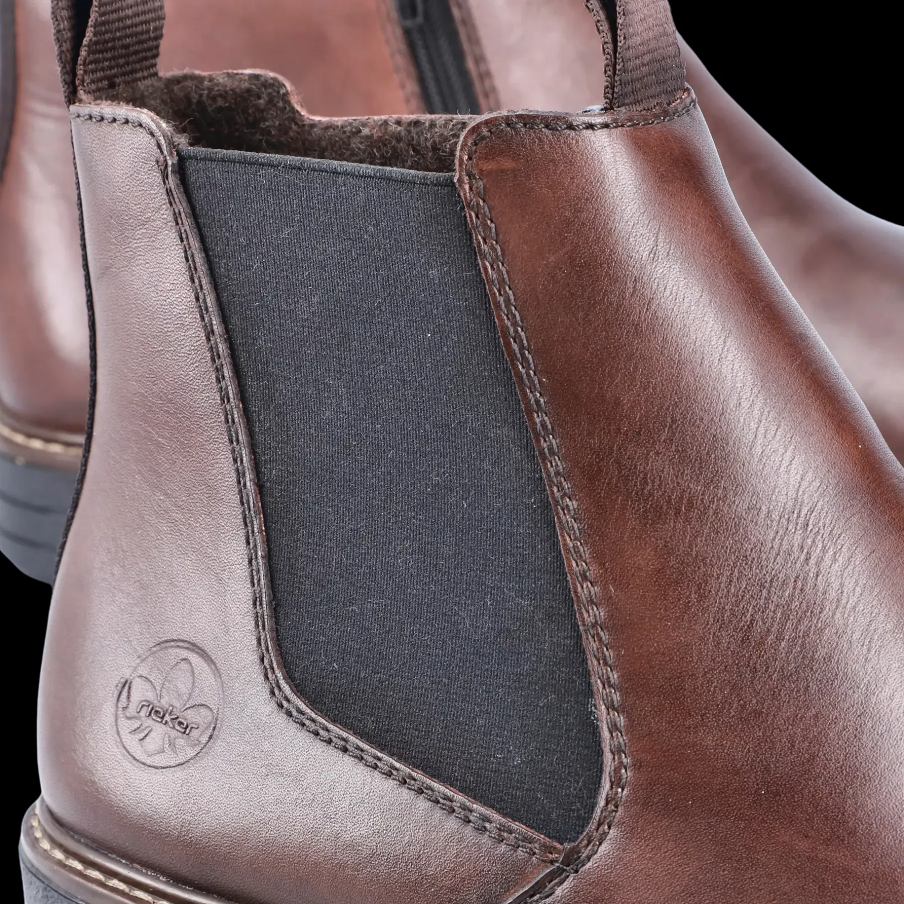 Miesten siistit Rieker nilkkurit ovat täydellinen valinta, kun tarvitset tyylikästä ja käytännöllistä talvikenkää. Aito nahkapäällinen ja lämmin vuori pitävät jalkasi mukavina ja lämpiminä. Vetoketjulla kengät saa nopeasti jalkaan, ja pitävä TR-kumipohja tarjoaa erinomaista pitoa. Reilu lesti.