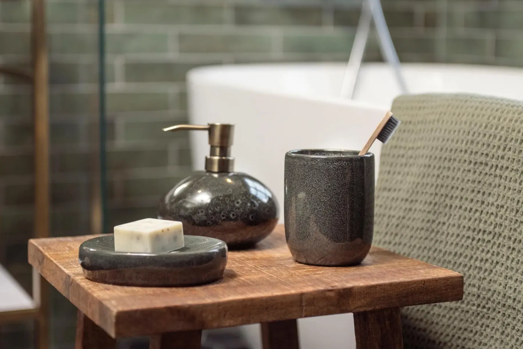 Kivikeraaminen tummanharmaa saippua-alusta. Lasitettu pinta.