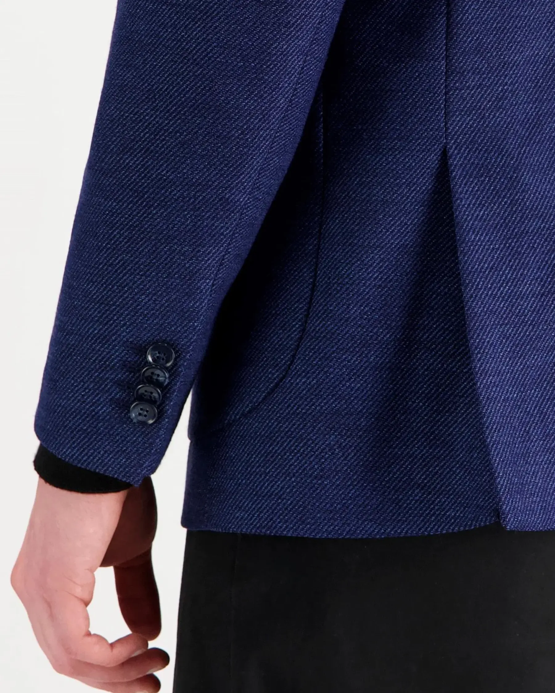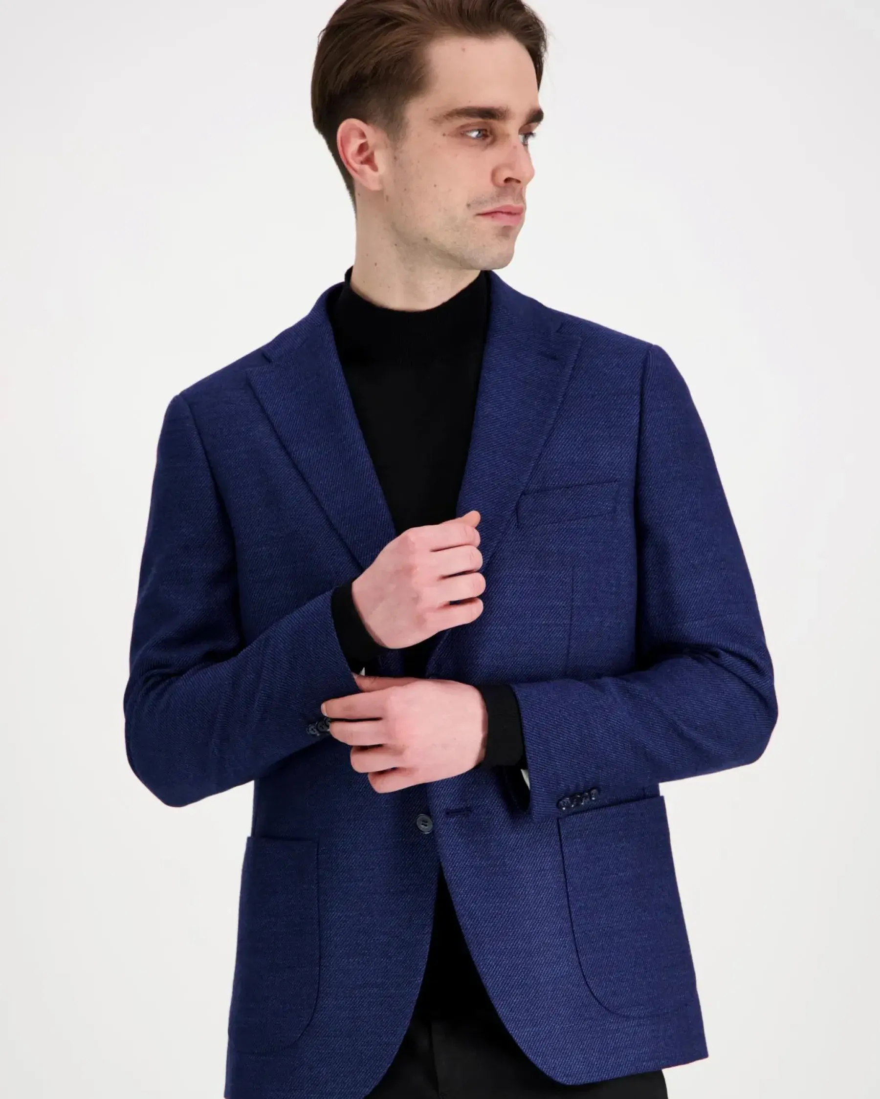Aina on tarvetta hyvällä siniselle irtotakille. Tämä puolivuorinen takki on erittäin helppohoitoinen ja monikättöinen. Italialainen villakangas on kudottu joustavaksi ja mukavaksi. Villan luontaisiin ominaisuuksiin kuuluu hyvä lämmönsäätelykyky ja hengittävyys, sekä miellyttävä tuntu ihoa vasten. Modern fit -istuvuus on klassisen ryhdikäs, mutta siihen on leikattu mukavasti väljyyttä. Takin pituus koossa 52 on 76cm.