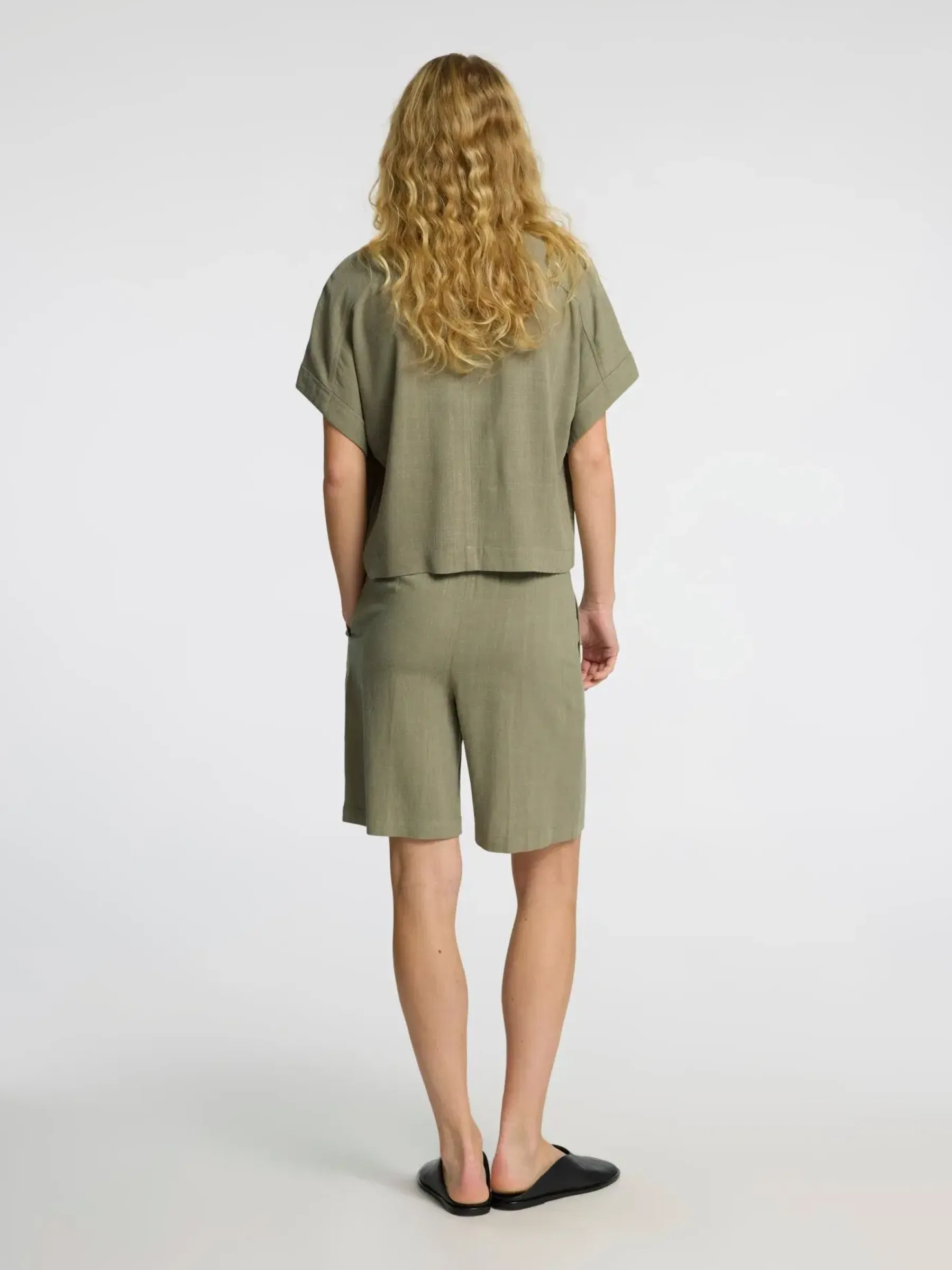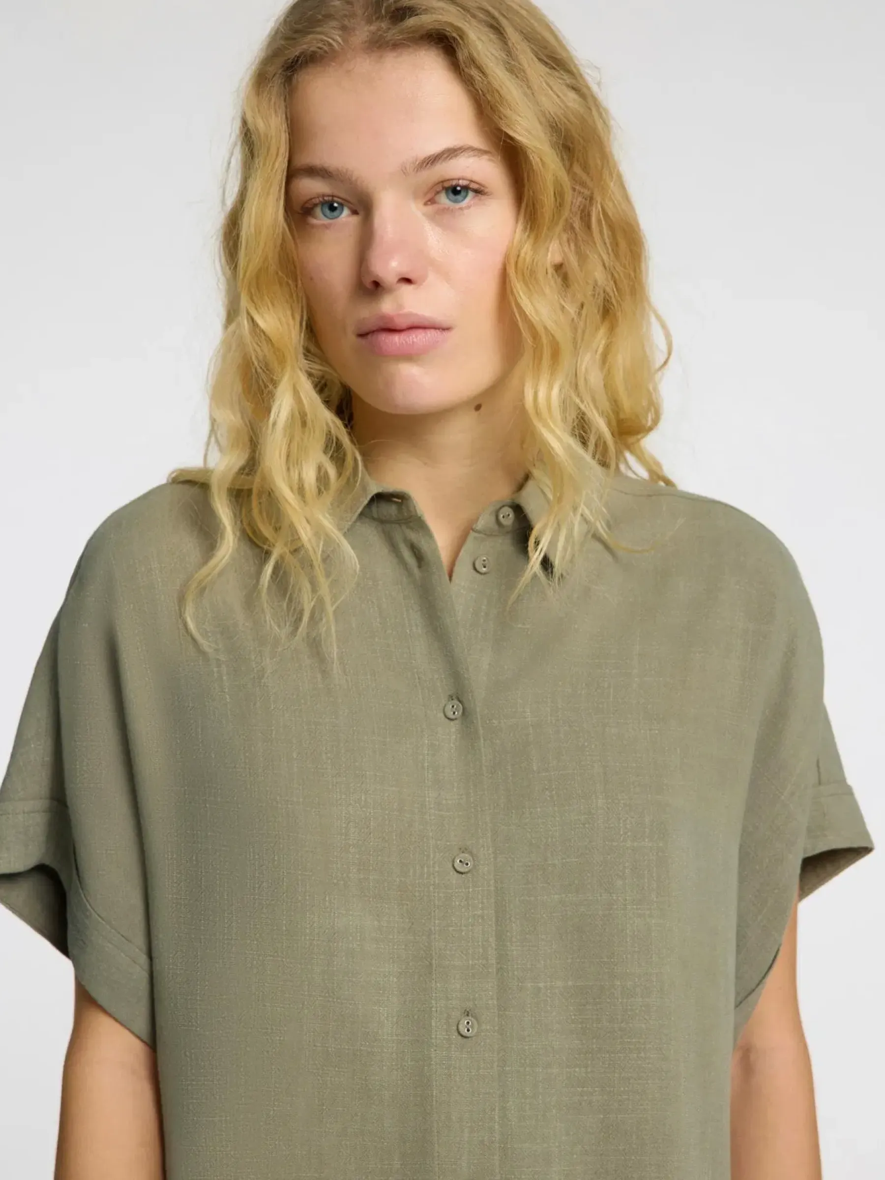 Lyhythihainen, vajaamittainen pusero. Valmistettu ihanan pehmeästä pellavasekoitteesta.