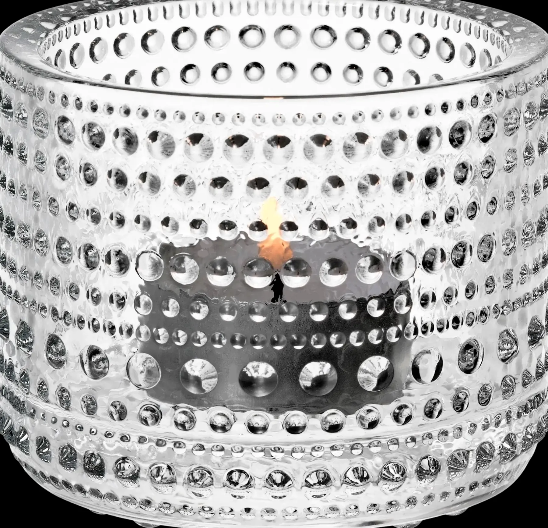 Muotoilija Oiva Toikan Kastehelmi-sarjassa on innovatiivinen pisarakoristeluun perustuva pintarakenne. Kauniisti valoa heijastavat lasihelmirivit muistuttavat aamuauringossa kimaltavia kastepisaroita. Kastehelmi-kynttilälyhdyn pehmeä valo luo huoneeseen lämmintä tunnelmaa. Kaunis yksin tai eriväristen kynttilälyhtyjen ryhmässä. Idea Kastehelmen lasipisaroilla koristellusta pinnasta syntyi, kun Oiva Toikka halusi peittää puristelasiin väistämättä jäävät saumakohdat. Näin kehittyi kokonaan uusi pintastruktuuri, joka korosti lasin elävyyttä ja valon heijastumia. Kastehelmi on ollut aiemmin tuotannossa 1964-1988 ja suosituimmat osat palasivat valikoimiin vuonna 2010. Rakastettuun Iittalan Kastehelmi-sarjaan kuuluu erikokoisia käytännöllisiä, toimivia ja koristeellisia lasiastioita.