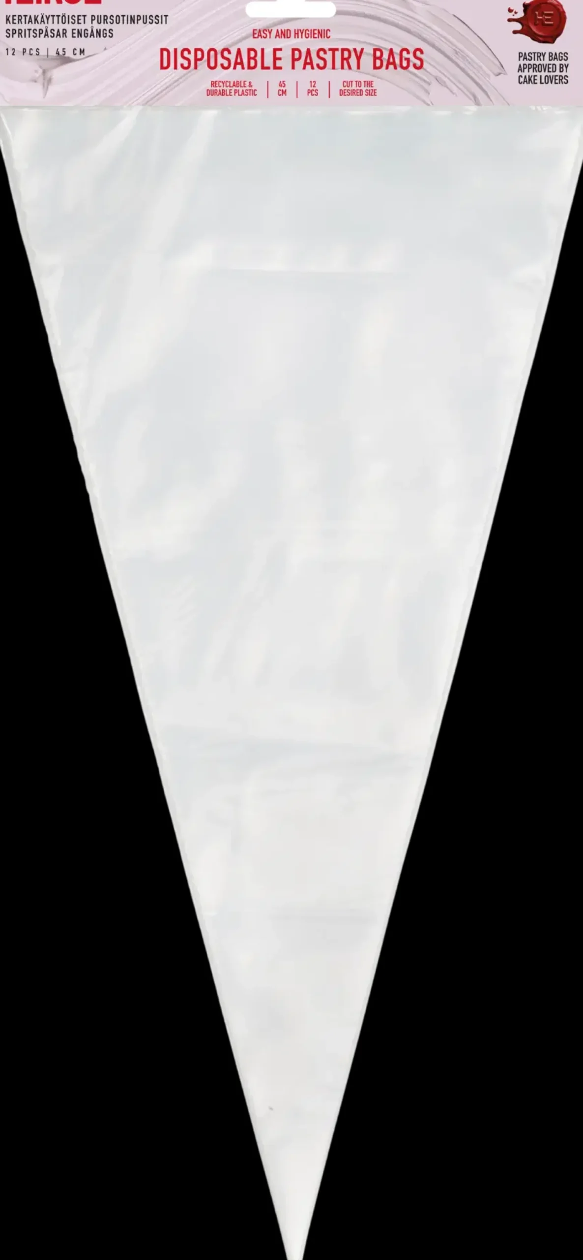 45 cm pursotinpussi sopii mainiosti kerman ja soseen pursotukseen tai suuren pikkuleipämäärän kuorruttamiseen!