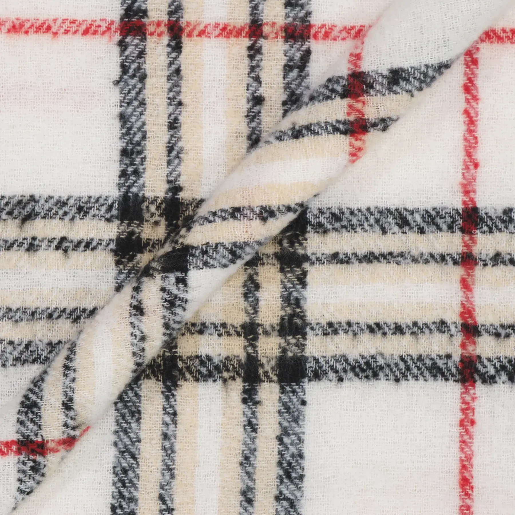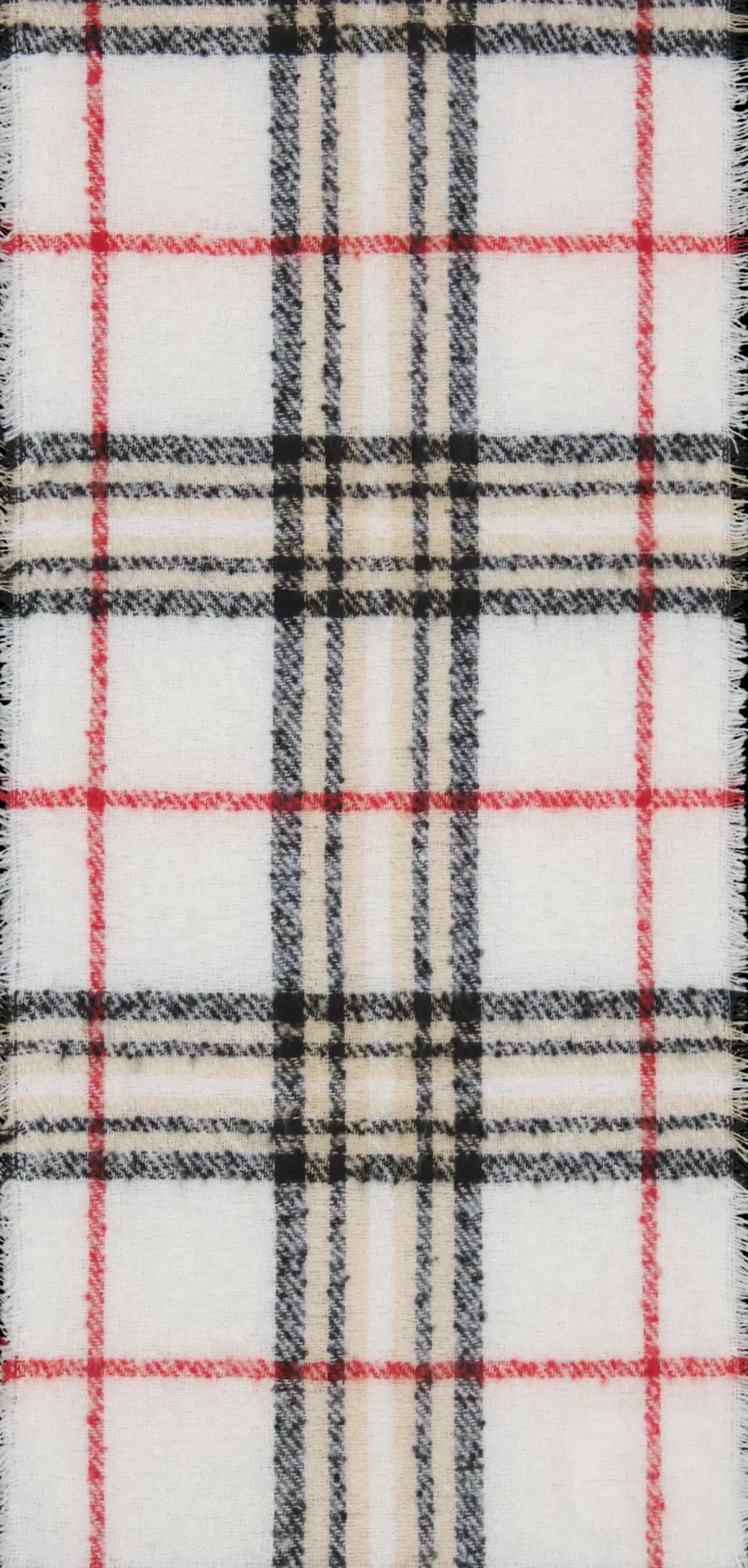 Pehmeä kaulaliina jossa eläväpintainen lanka yhdistettynä klassiseen ruutukuosiin. Kaulaliinan koko 40×180 cm, päissä lyhyet leikatut hapsut.