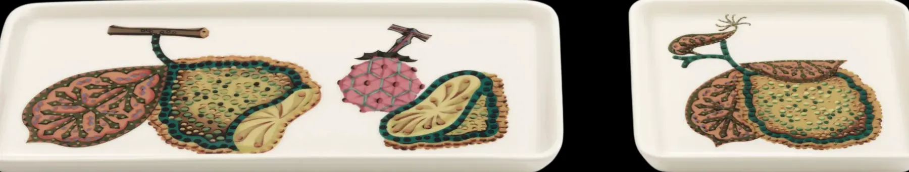 Taika Sato yhdistää Klaus Haapaniemen eloisan taiteen ja Heikki Orvolan ajattoman muotokielen. Sarjan 12x12cm neliölautanen on sekä käytännöllinen että koristeellinen, sopien kooltaan pienille alkupaloille ja herkuille sekä tarjoiluun. Lautasen pintaa koristaa mielenkiintoinen asetelma hedelmiä. Kaunis lahjaidea muotoilun ystävälle.