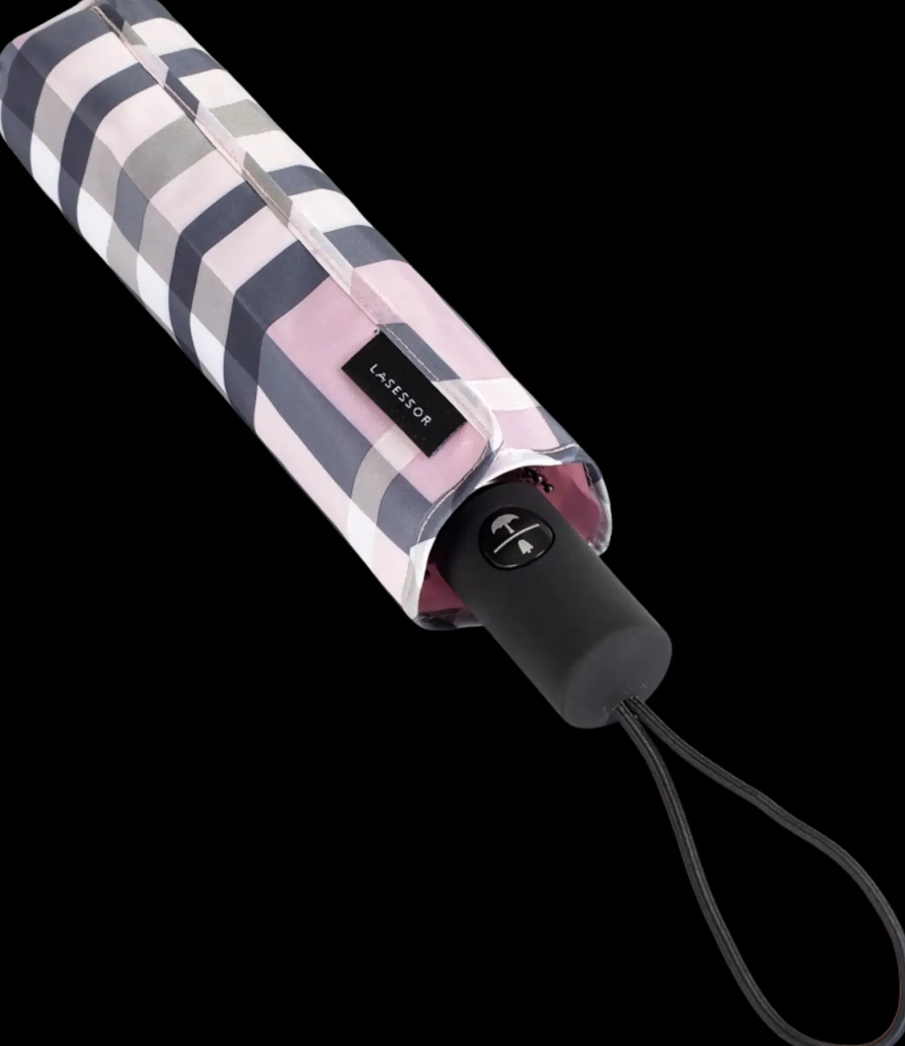 Sateenvarjo aukeaa ja sulkeutuu nappia painamalla. Tuulenkestävä, 1 vuoden takuu. Tarrakiinnitteinen suojapussi on helppo avata ja varjon saa helposti sinne takaisin.Pituus kokoontaitettuna 27 cm, halkaisija 95 cm