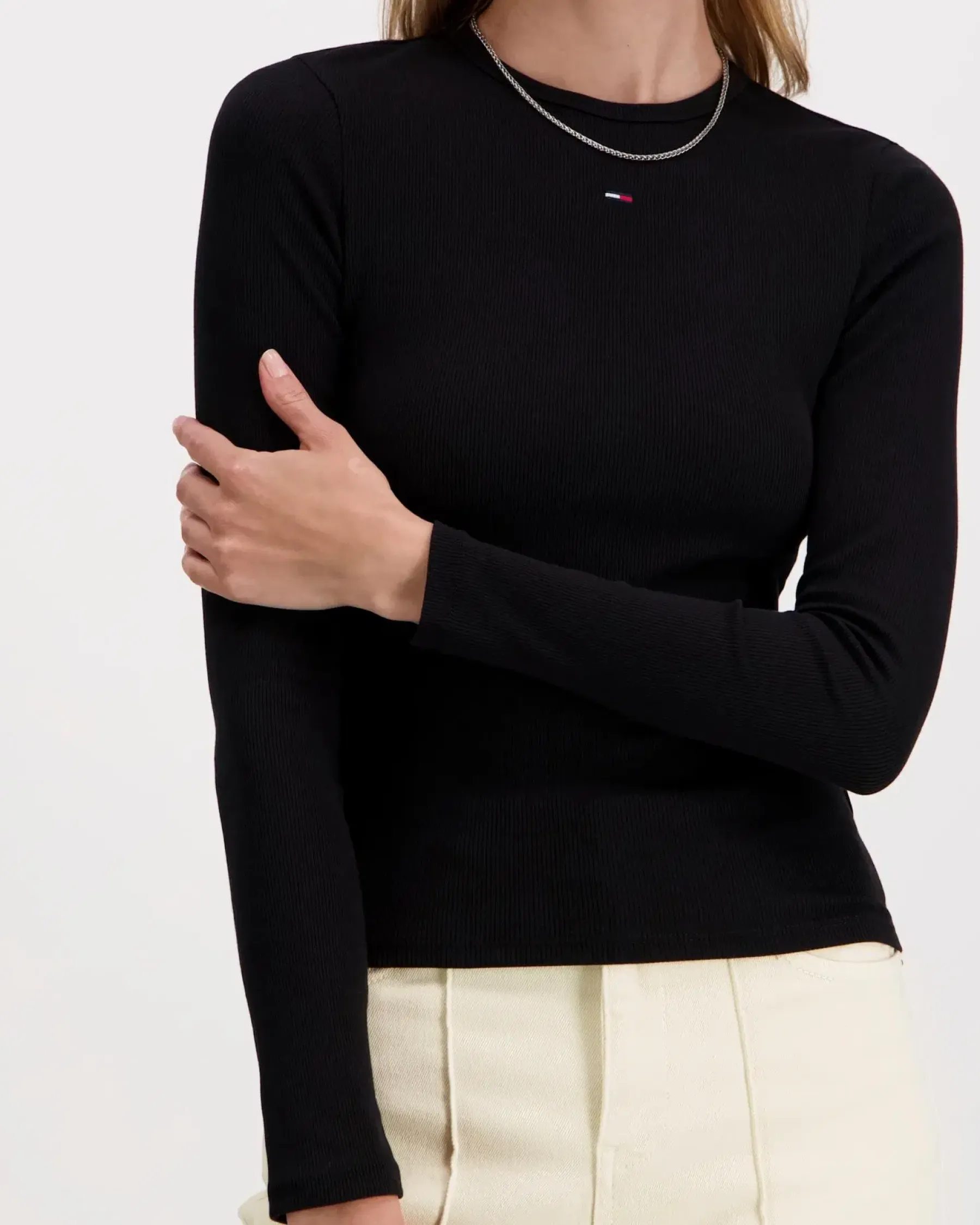 Tyylikäs ja mukava Tommy Jeans Tjw slim essential rib paita on täydellinen valinta rennon tyylikkääseen pukeutumiseen. Pyöreä pääntie ja pitkät hihat, laatu pehmeää ja joustavaa puuvilla-elastaaniribbiä.