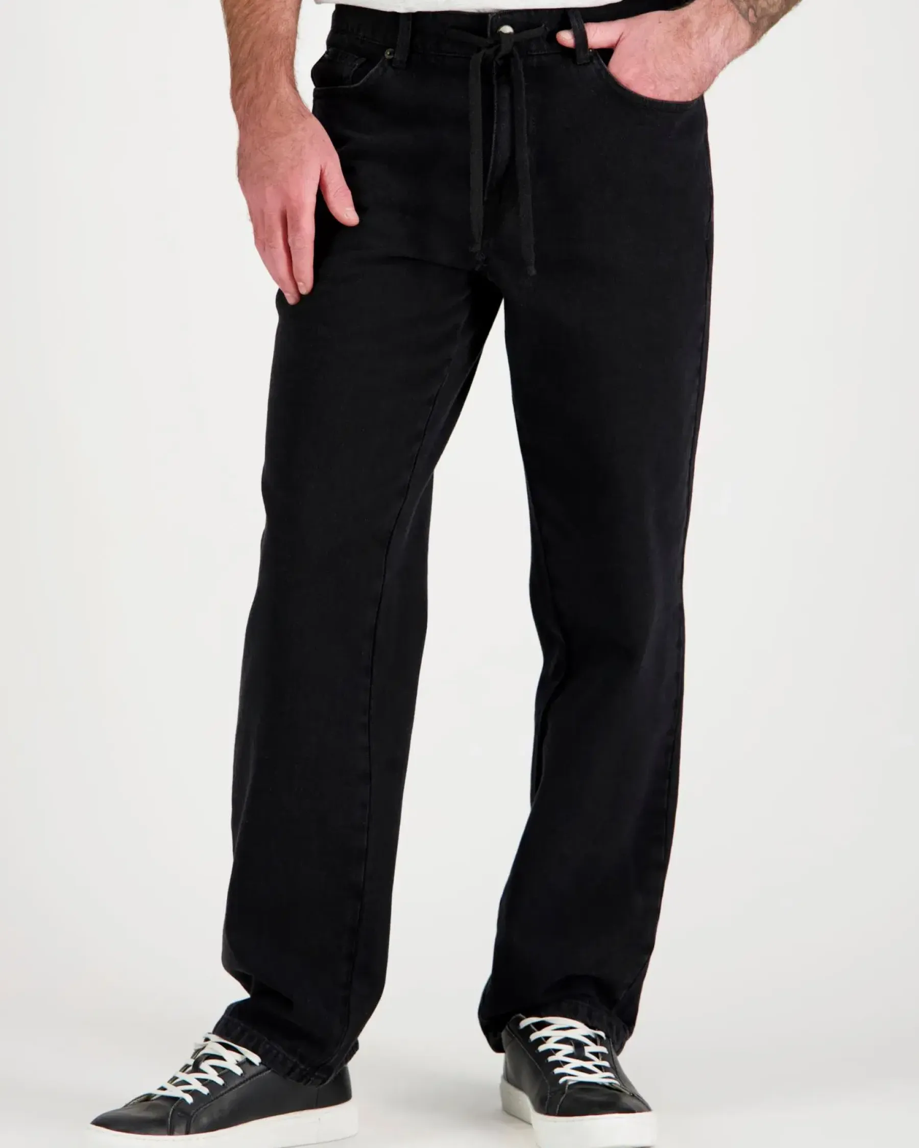 Tyylikkäät ja rennot Billebeino track-farkut, joissa on väljä istuvuus. Edessä käytännölliset taskut ja vyötäröllä kiristysnauha mukavuuden säätämiseen.