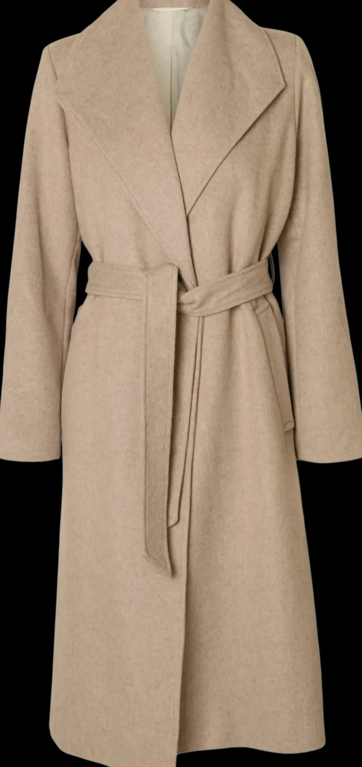 Selected Femme villakangastakki, tämä muodikas pidemmmän mallinen villakangastakki on käytännöllinen lisä vaatekaappiisi. Takissa on näyttävät kaulukset, sivutaskut, vyökiinnitys, vuoritettu malli. Tämä tuote on valmistettu vähintään 30 % kierrätetystä villasta, joka auttaa säästämään luonnonvaroja ja vähentämään tekstiilijätteen määrää.