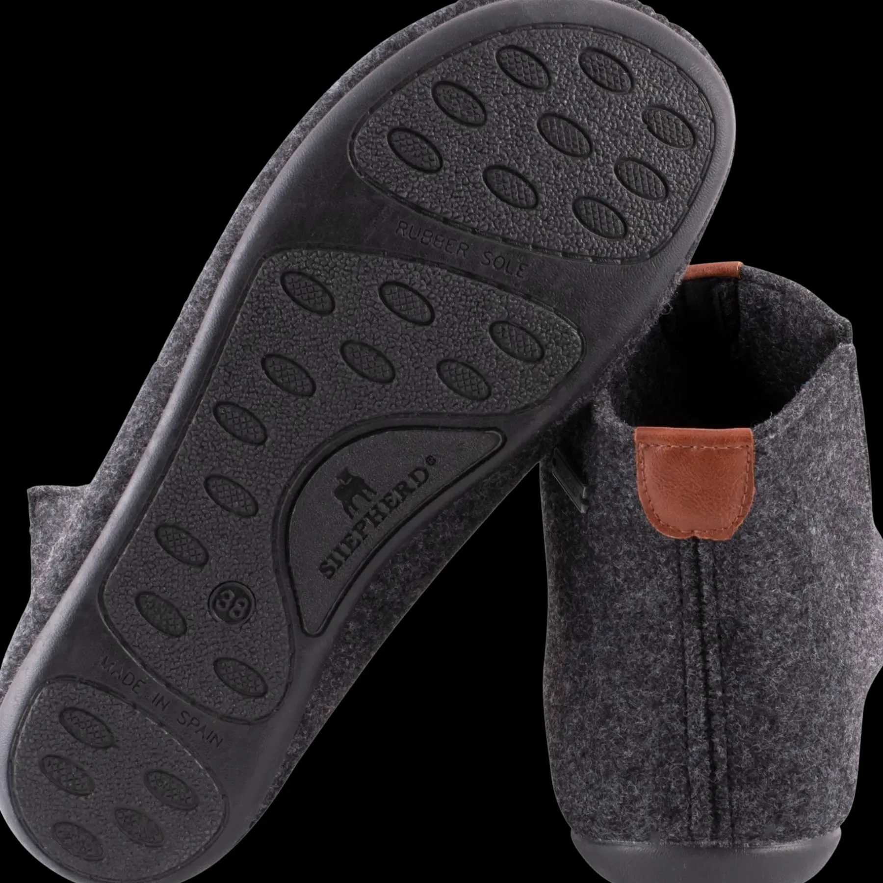 Päällinen villahuopaa. Pitävä kumipohja. Valmistettu Euroopassa.
