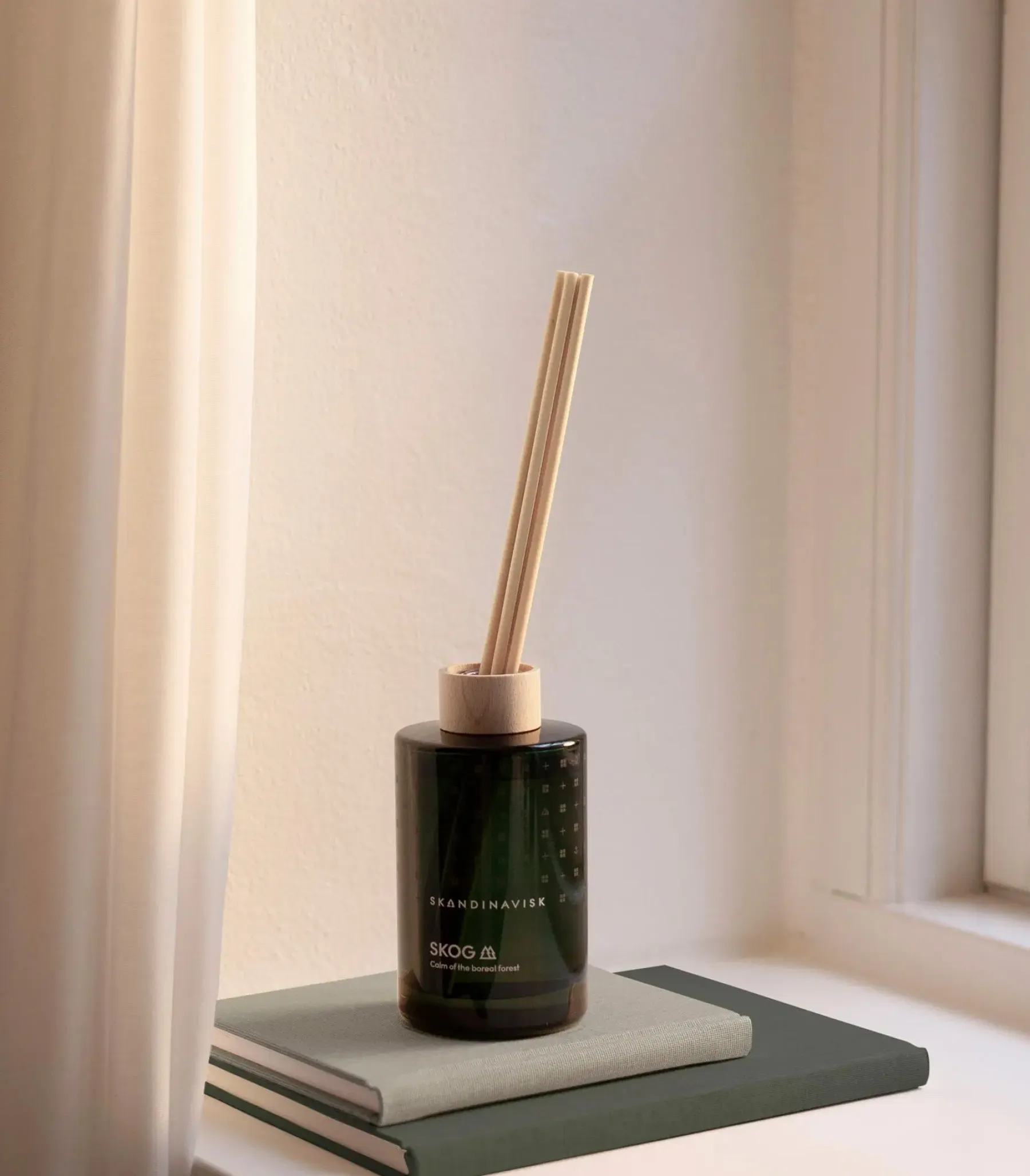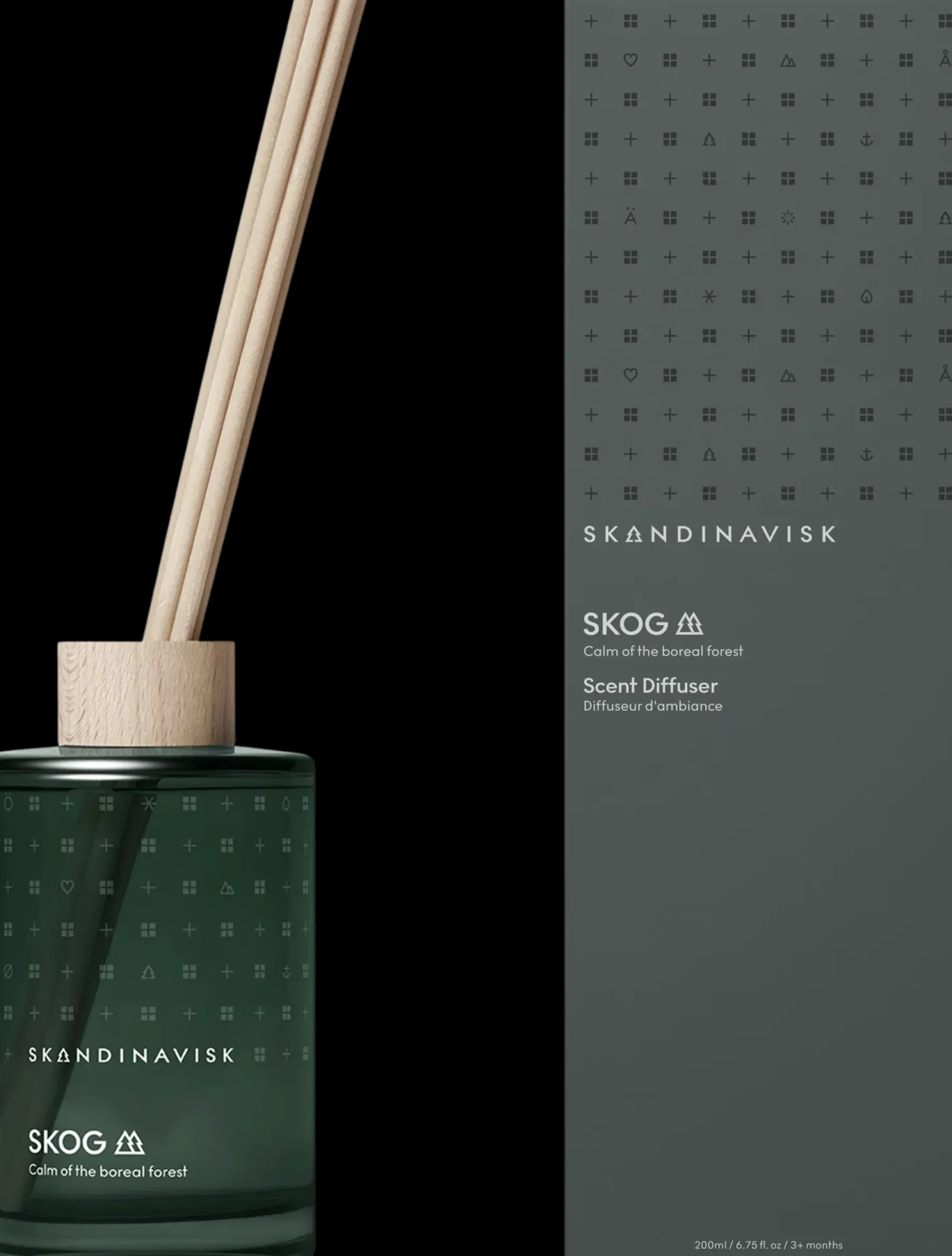 Uudessa Skandinavisk diffuuseri-sarjassa on uudenlainen seos Skandinavisk- tuoksukertomuksia ja uusiutuvasti viljellystä kasviöljystä. Öljy tulee värjätyssä lasipullossa, jossa on koristeellinen pyökkirengas pullonkaulassa. Diffuuseripakkauksessa on 8 tikkua, jotka varmistavat vähintään kolmen kuukauden ajan lempeää ja vastuullista huonetuoksua. Se on alkoholiton, vaaraton ja vegaaninen. FSC-sertifioitu pakkausmateriaali on valmistettu käyttämällä luonnollisia väriaineita ja on kierrätettävä. Täyttöpulloja diffuusereihin on saatavilla.