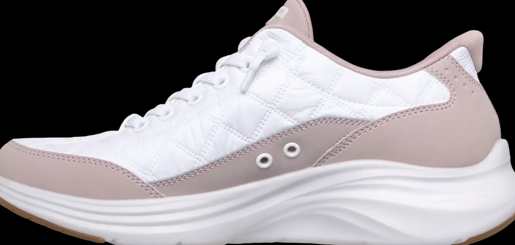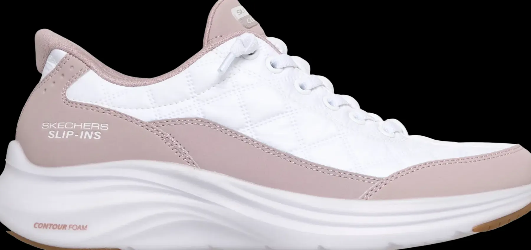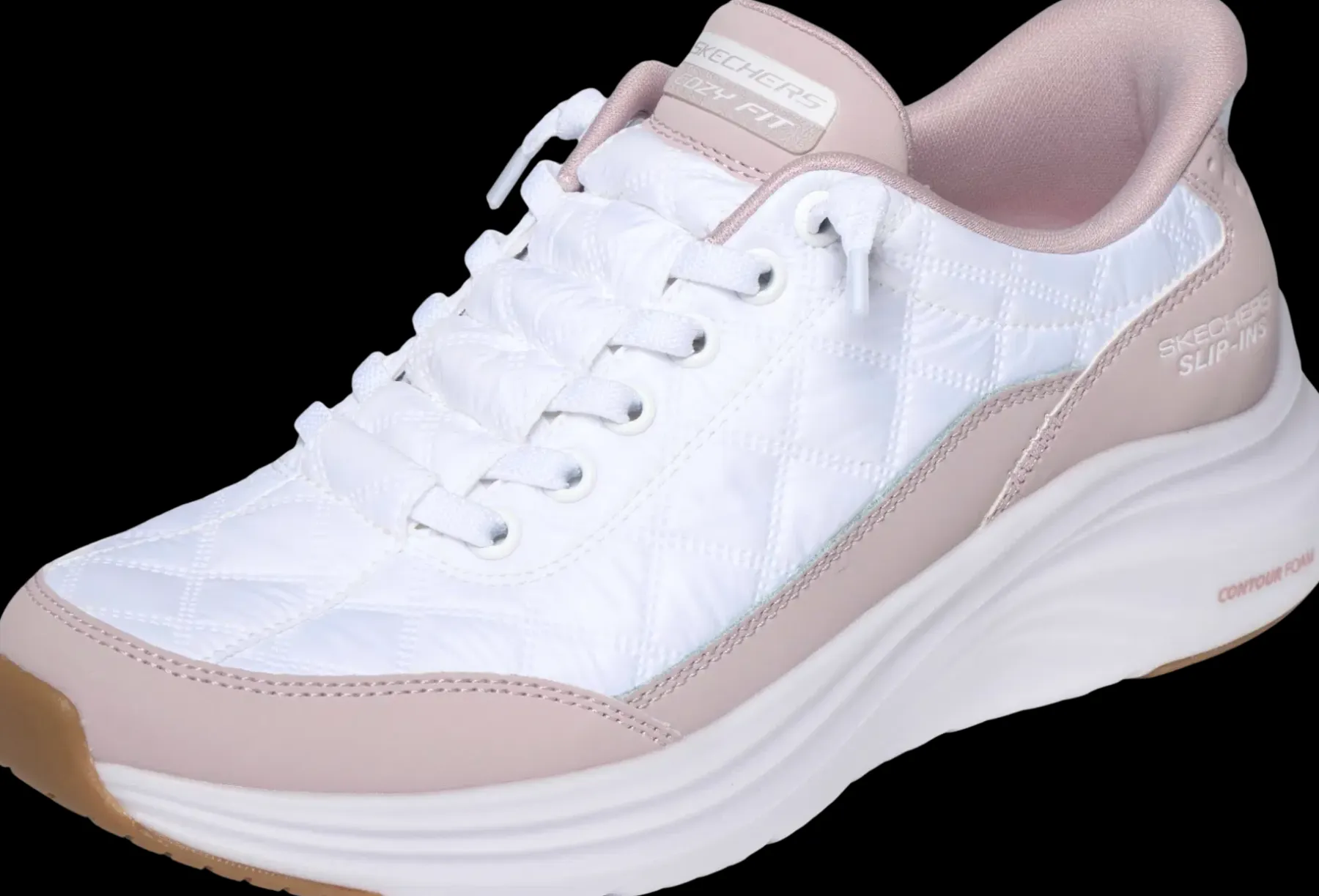 Ympäröi jalkasi vaivattomalla mukavuudella Skechers Hands Free Slip-ins® -Contour Foam™ – Cozy Fit™ kengissä. Suunniteltu yksinoikeudella varustetulla Heel Pillow™ -teknologialla, tässä slip-on-mallissa on tikattu Cozy Fit™ ja synteettinen päällinen solmituilla joustonauhoilla, Contour Foam™ -välipohjapehmuste ja tunnettu pehmustettu Skechers Air-Cooled Memory Foam® -pohjallinen.