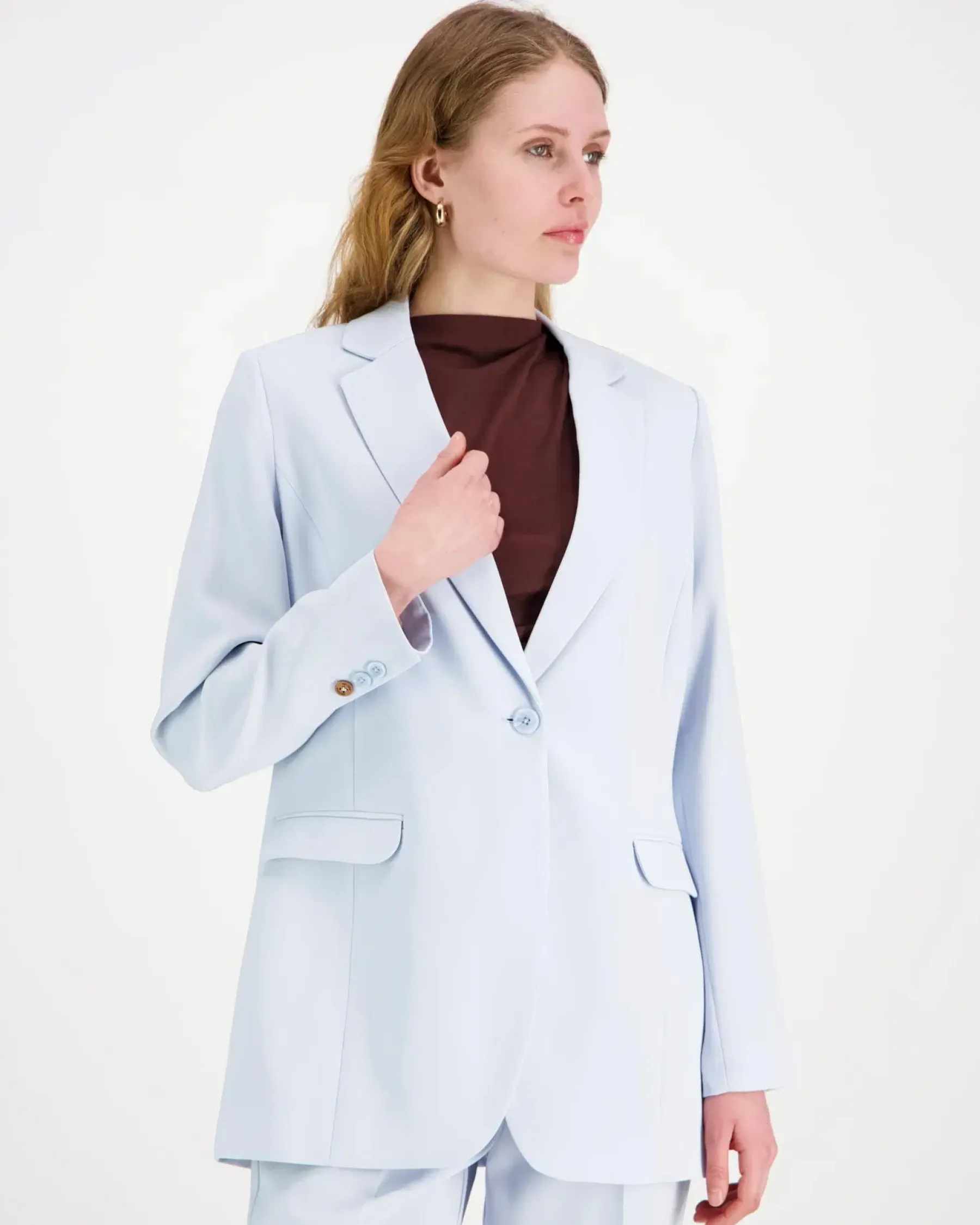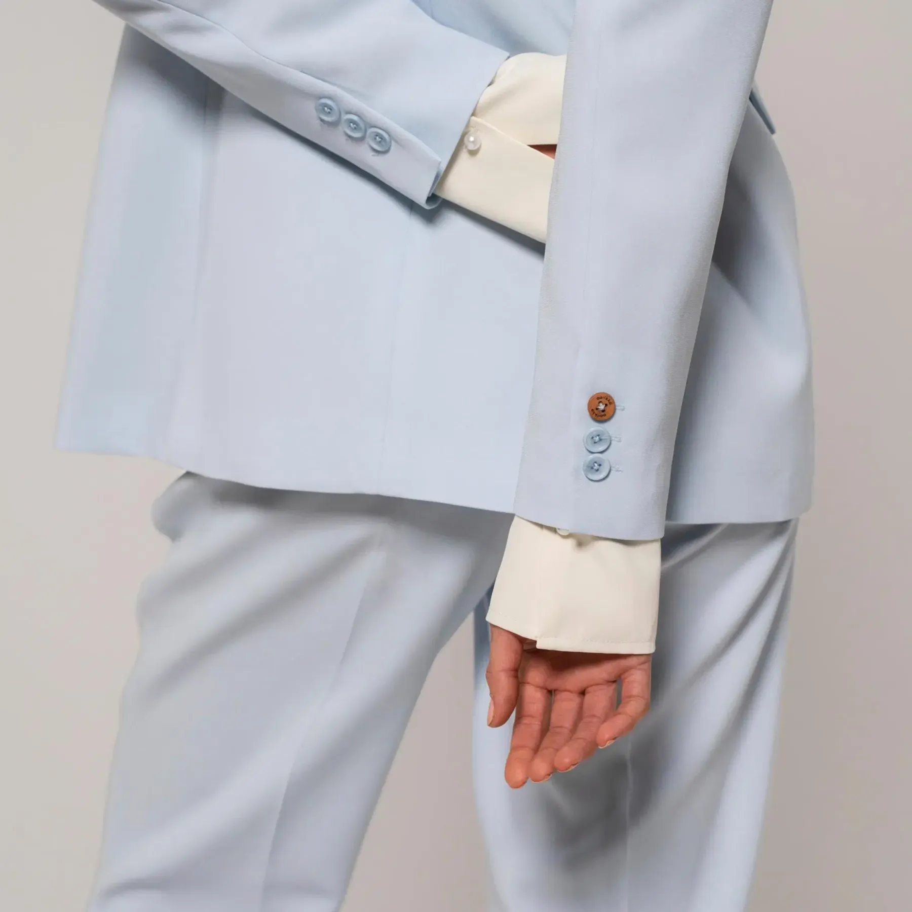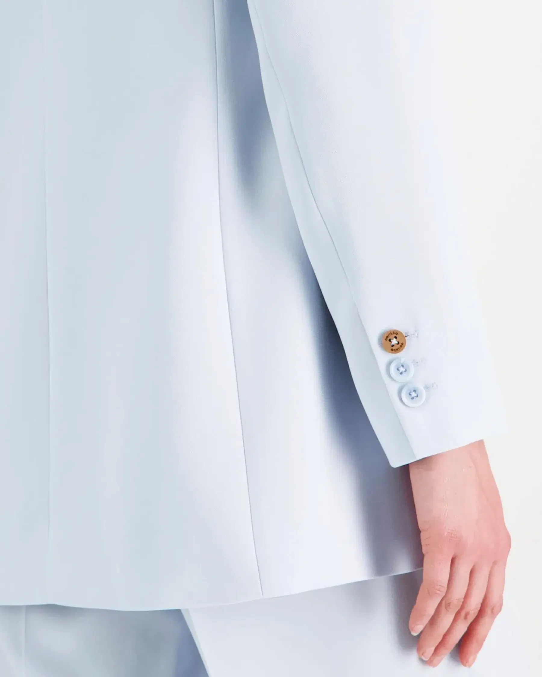 Klassinen yksirivinen bleiseri, joka on kevyesti muotoonommeltu. Sola-bleiserissä on edessä upotetut taskut, jakardikuvioitu vuori ja täyspitkät hihat. Toisessa hihansuussa puunappi. Olka–helmamitta koossa S: 75,5 cm. Suunniteltu Suomessa.