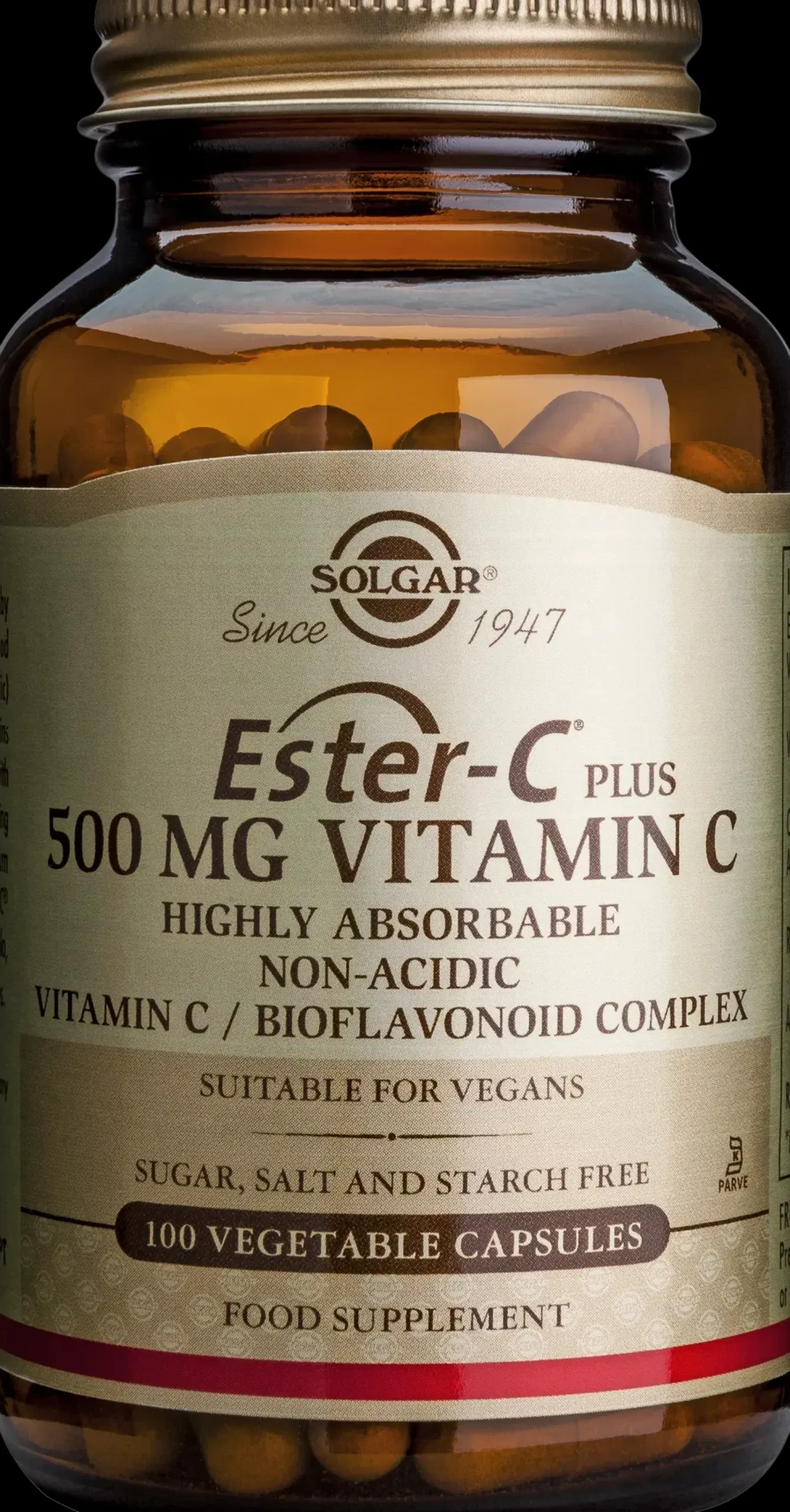 Solgar Ester-C ® 500 mg sisältää Ester-C-C-vitamiinia, joka on ainutlaatuinen ja patentoitu C-vitamiinin muoto. Verrattuna tavalliseen C-vitamiiniin (askorbiinihappo), Ester-C® on happoneutraalina hellävaraisempi vatsalle, se imeytyy tehokkaammin ja pysyy immuunipuolustuksen käytettävissä pidemmän aikaa ja suurempina annoksina. Ester-C® pysyy kehosi käytettävissä jopa 24 tuntia antaen näin pidempiaikaisen tuen kehollesi.