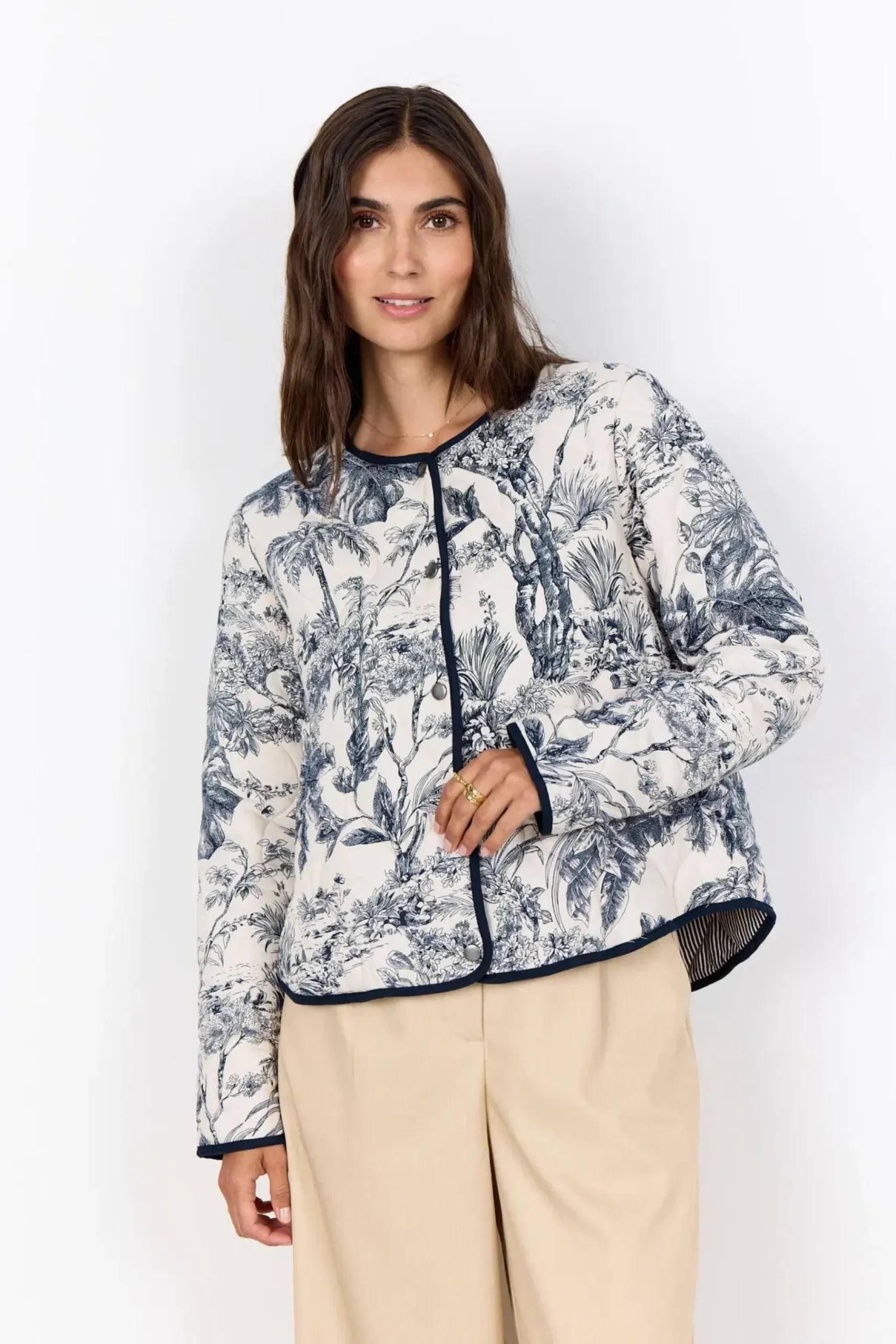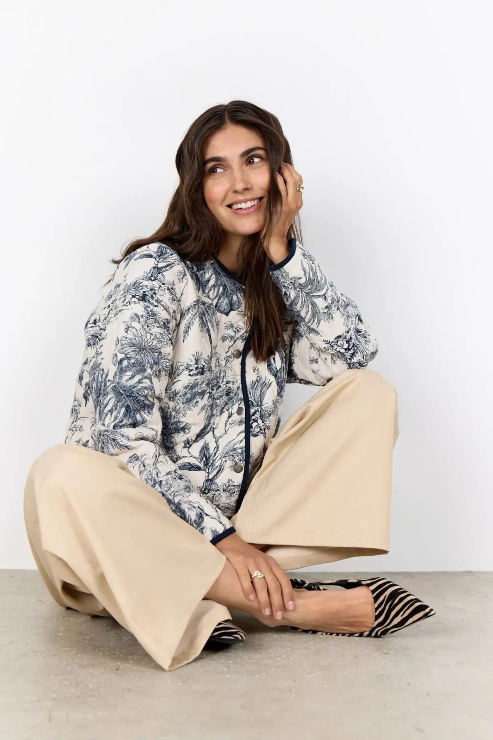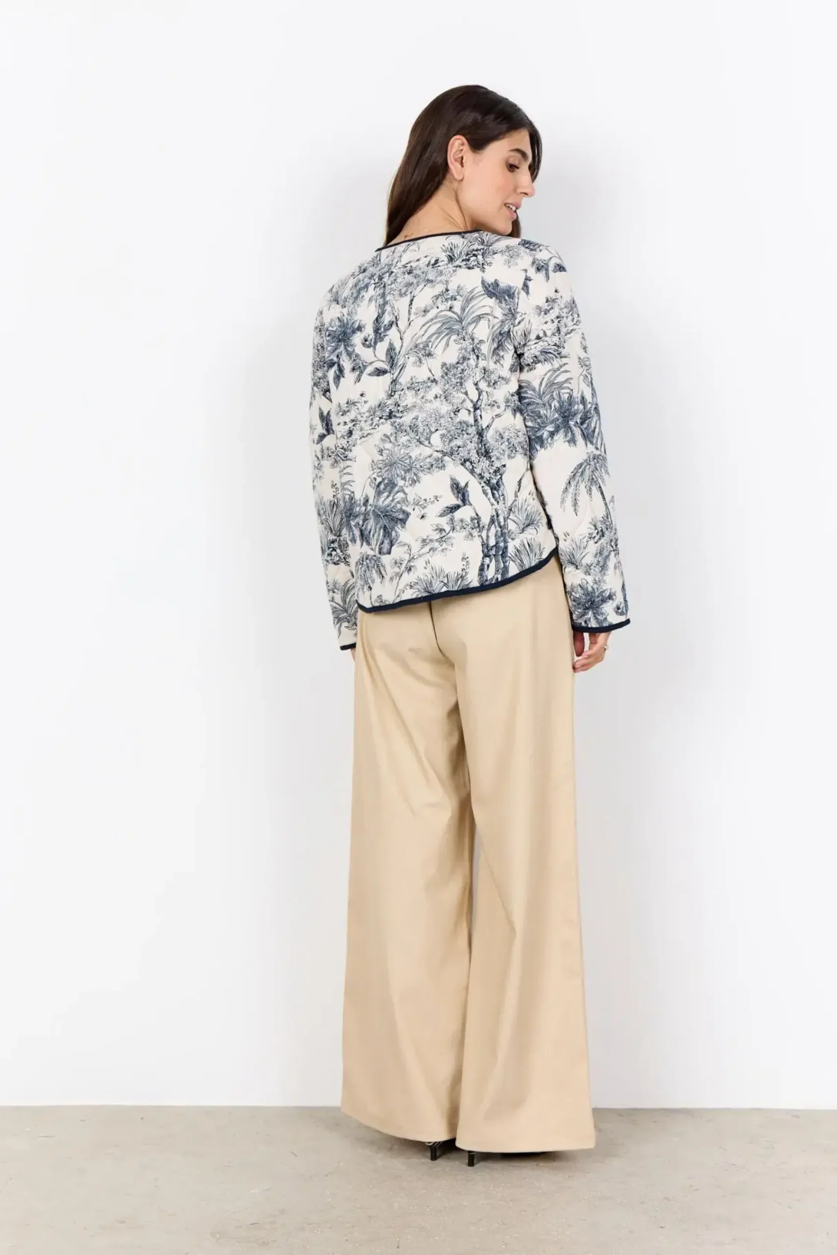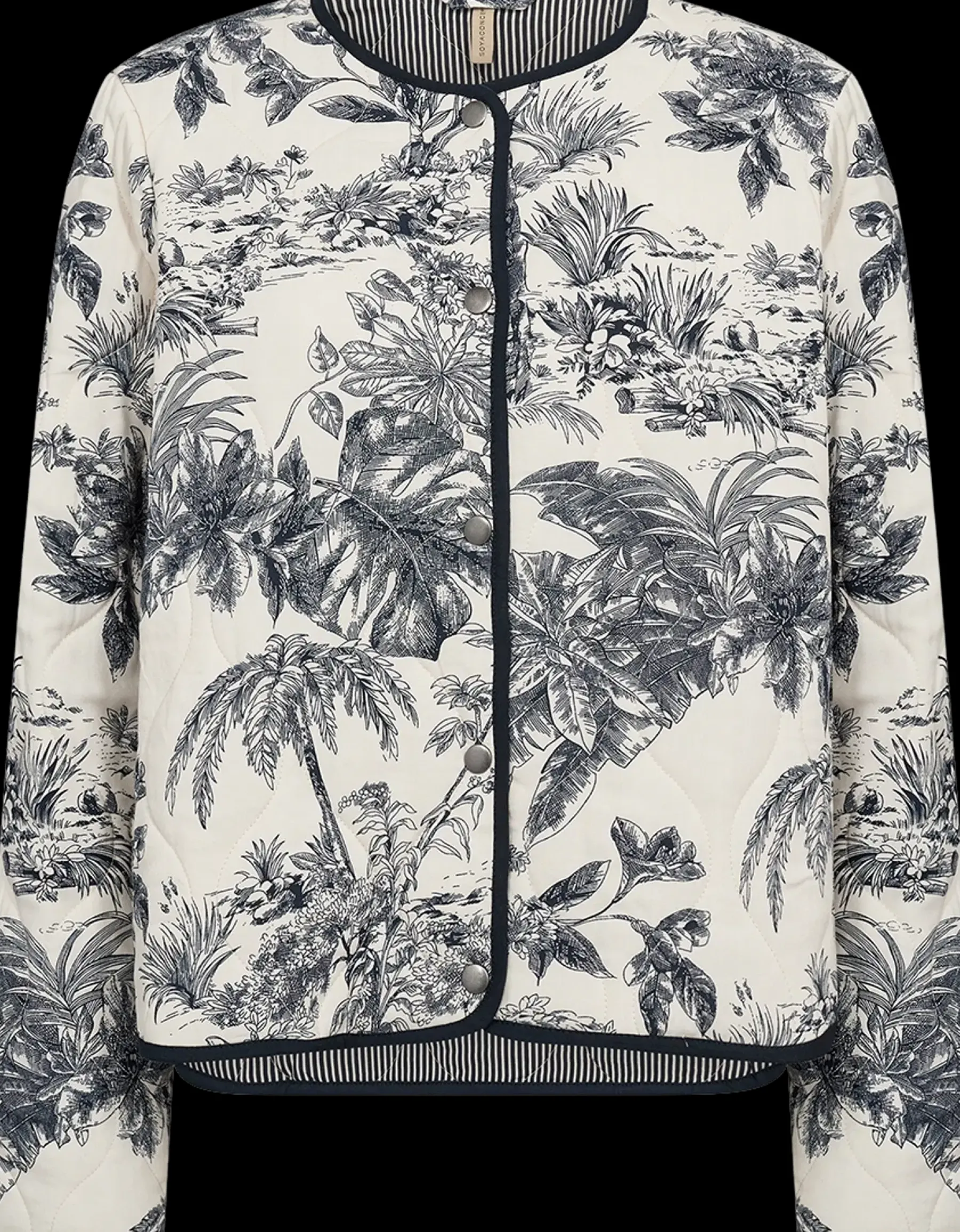 SC-CARLI 3 -takki on kauniisti kuvioitu takki, joka on valmistettu 100 % LENZING™ ECOVERO™ -viskoosista. Takissa on pyöreä pääntie, nappikiinnitys edessä sekä näyttävä kasviaiheinen kuviointi, tikattu pinta ja raidalliset reunat. Yhdistä se tummiin farkkuihin elegantin tyylin luomiseksi tai yksinkertaiseen hameeseen, jos haluat persoonallisen ilmeen.