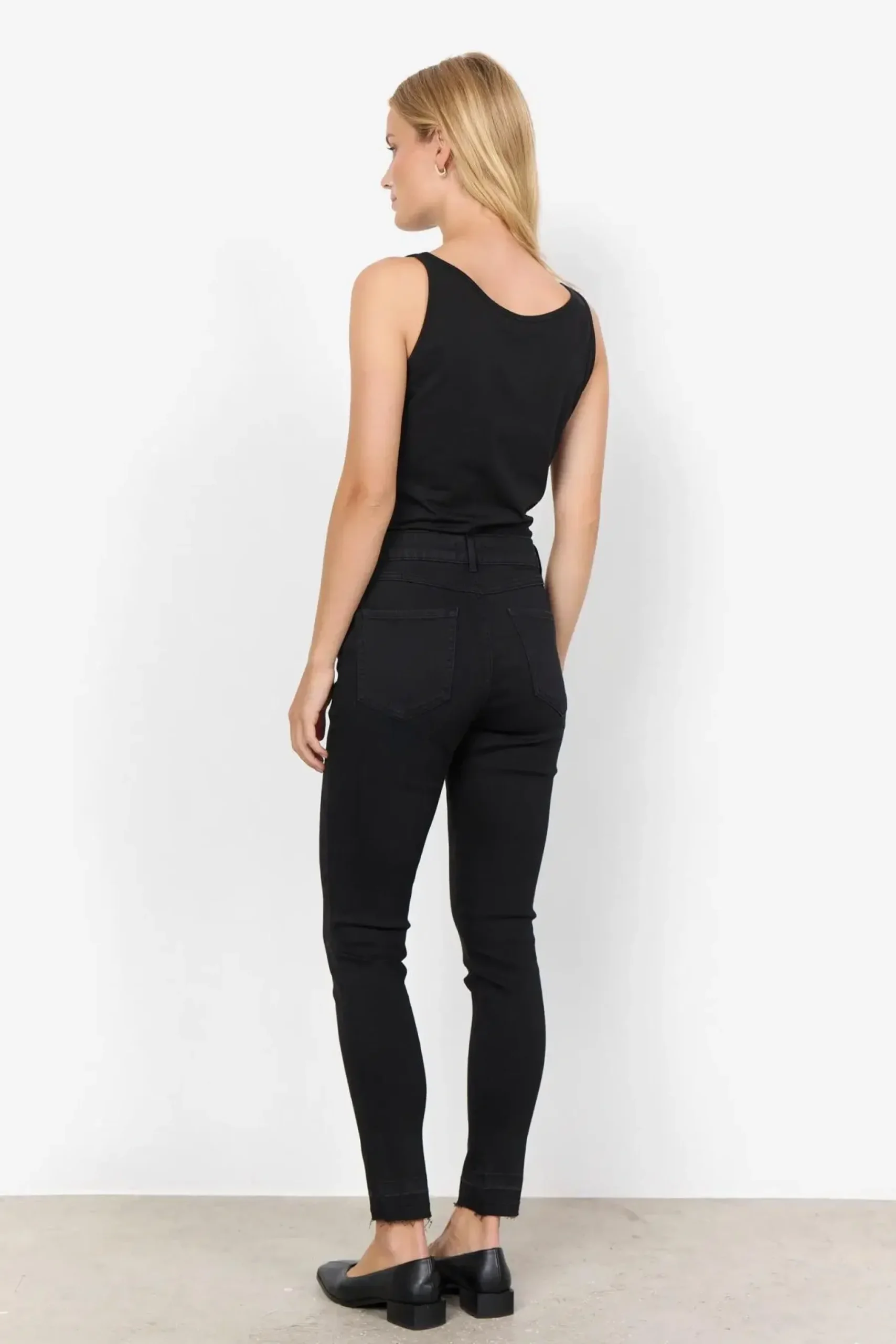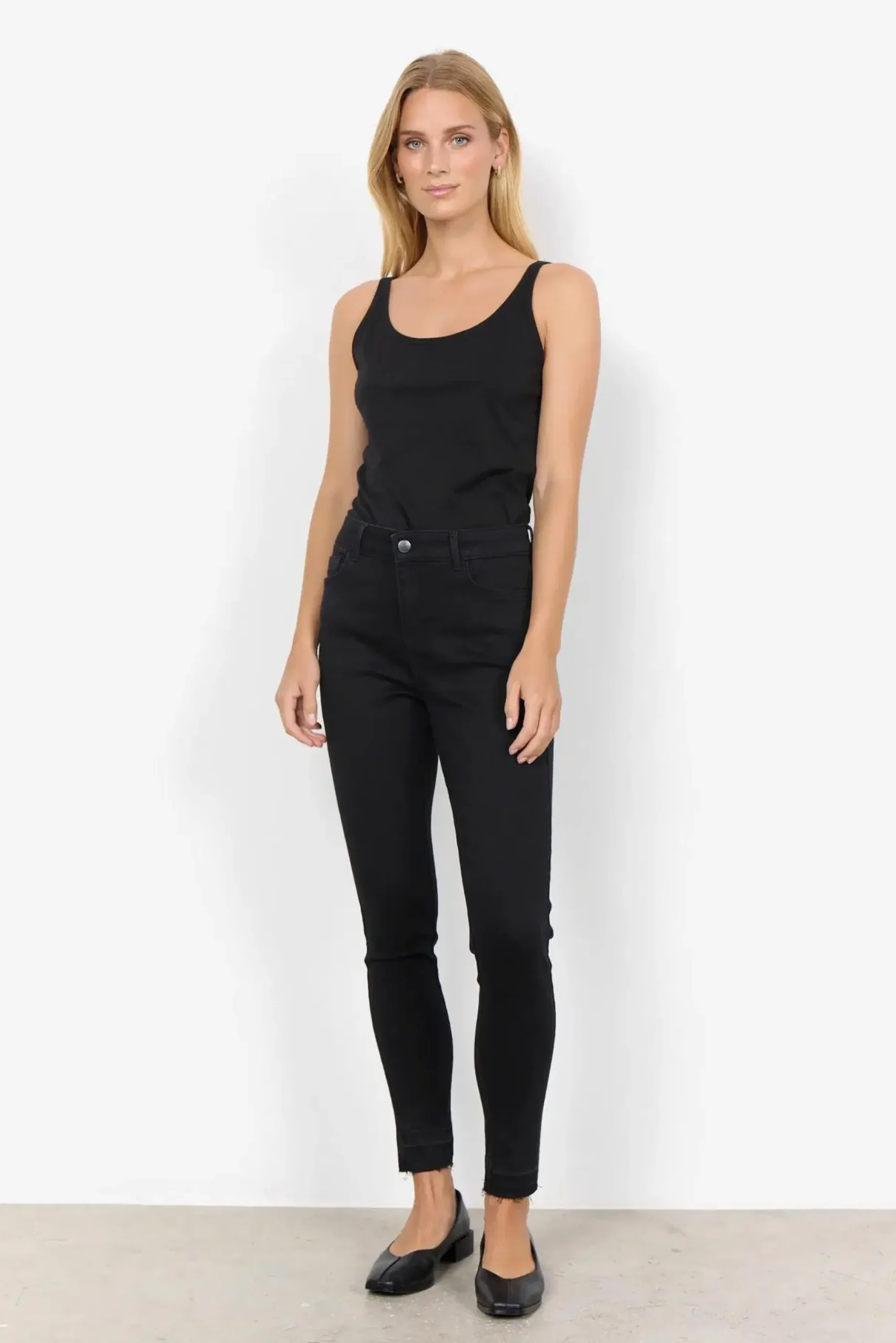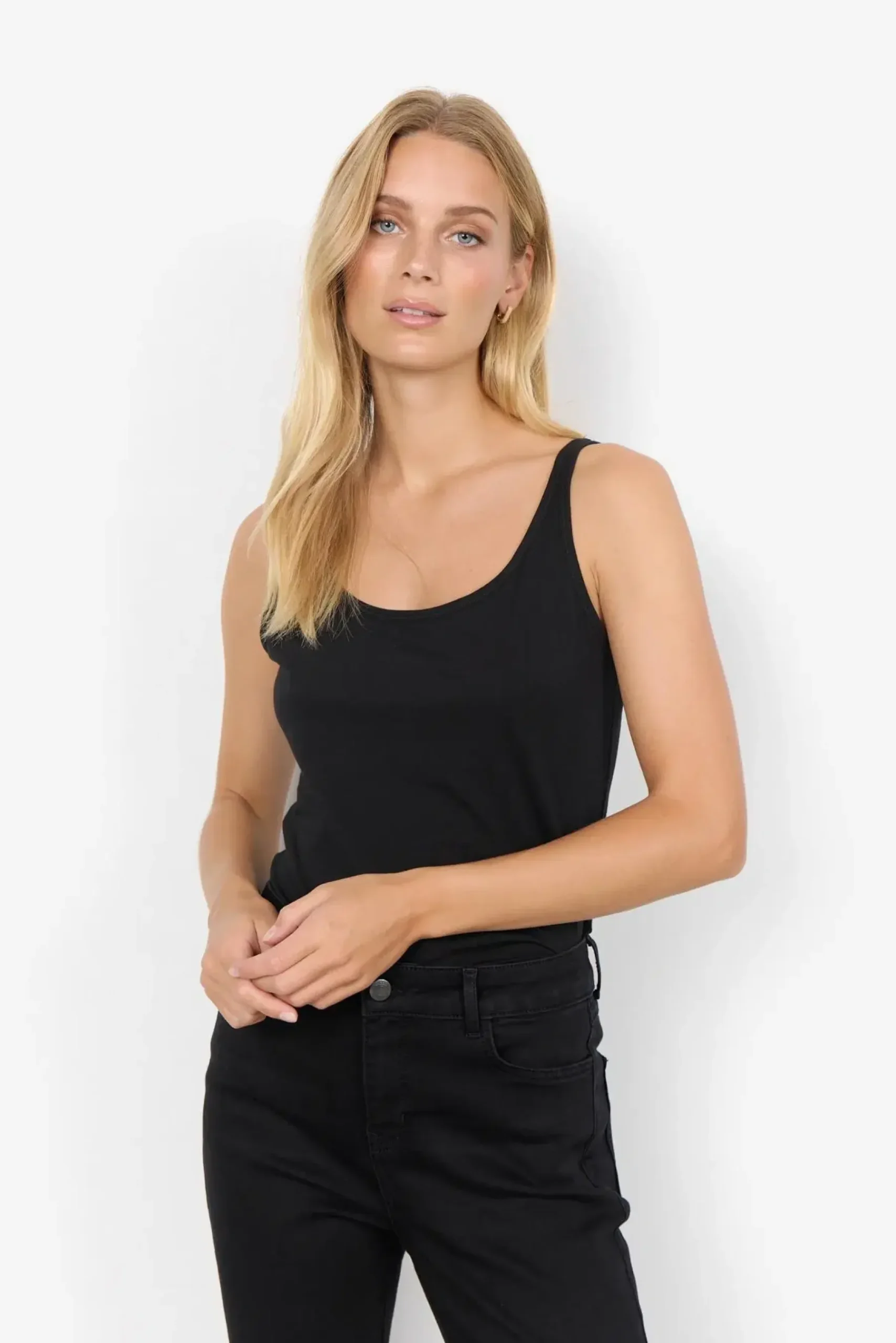 SC-Pylle 122 on yksi Soyan suosituimmista topeista. Se on valmistettu miellyttävästä, joustavasta materiaaliseoksesta, joka takaa mukavan istuvuuden ja pehmeän tunteen iholla. Yksinkertainen ja selkeä muotoilu tekee siitä vaatekaapin perustuotteen. Käytä sitä aluspaidaksi tai yksinään hameen kanssa lämpiminä päivinä – tyylikäs ja käytännöllinen valinta joka tilanteeseen.