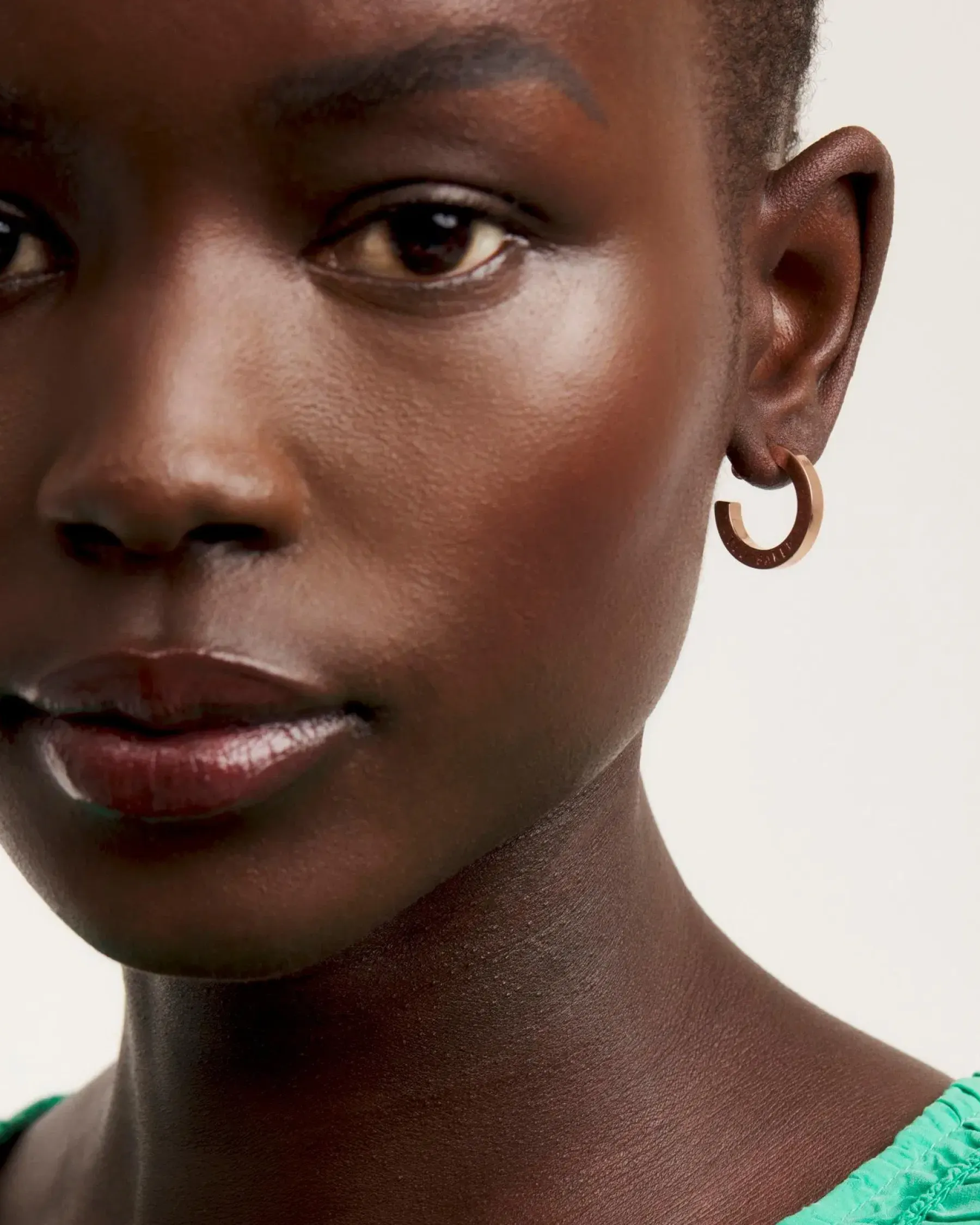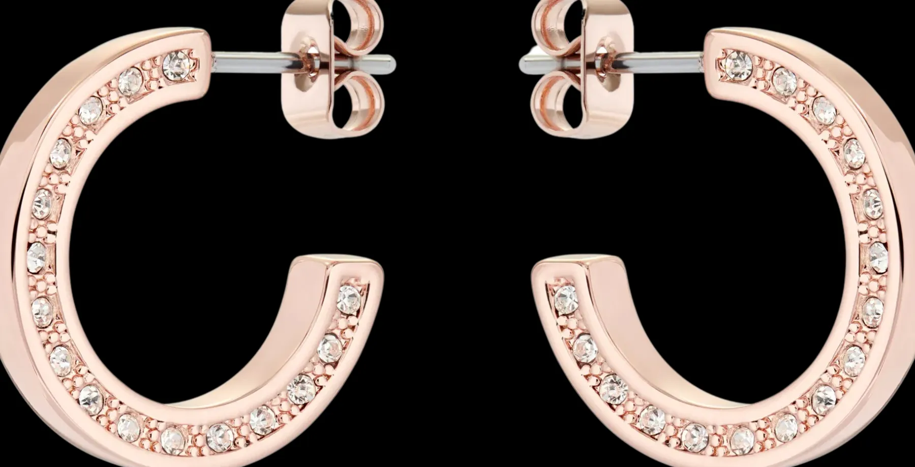 Elegantissa Ted Baker SENATTA rengaskorvakorussa on nappikiinnitys ja kristalleja sivussa. Korvakorut ovat ruusukullanväriset