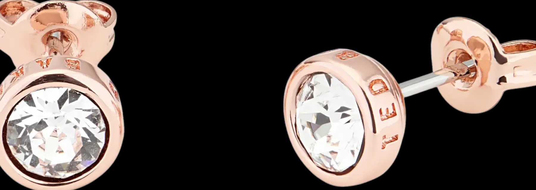 Ted Baker SINAA korvakorut ovat todelliset klassikot. Kirkas kristalli säihkyy ruusukullanvärisessä istutuksessa, jonka reunaan on kaiverrettu logoja.