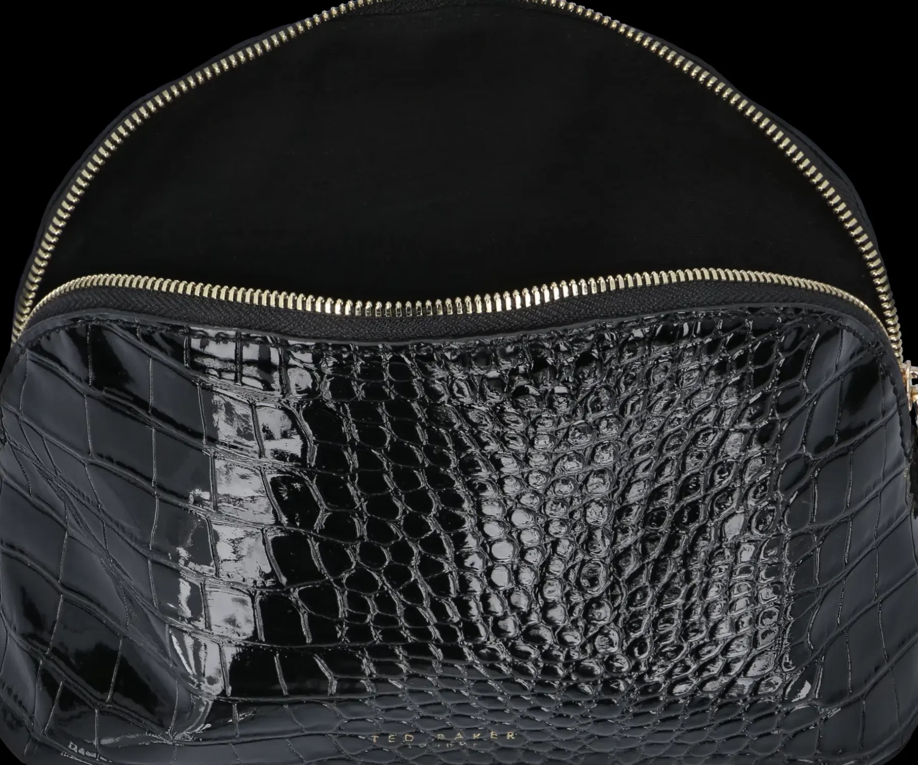 Vetoketjullinen toilettilaukku krokuvioitua keinonahkaa.