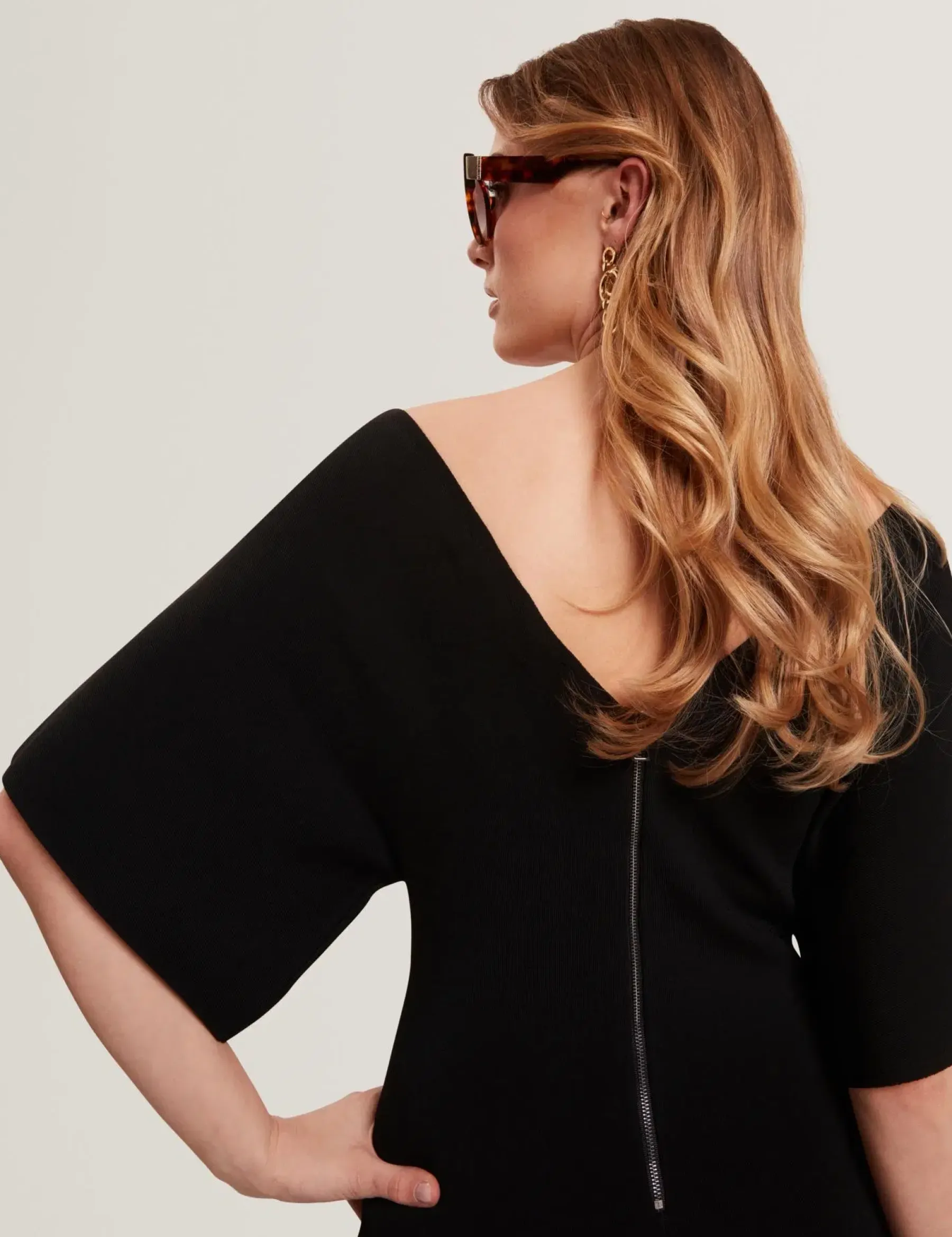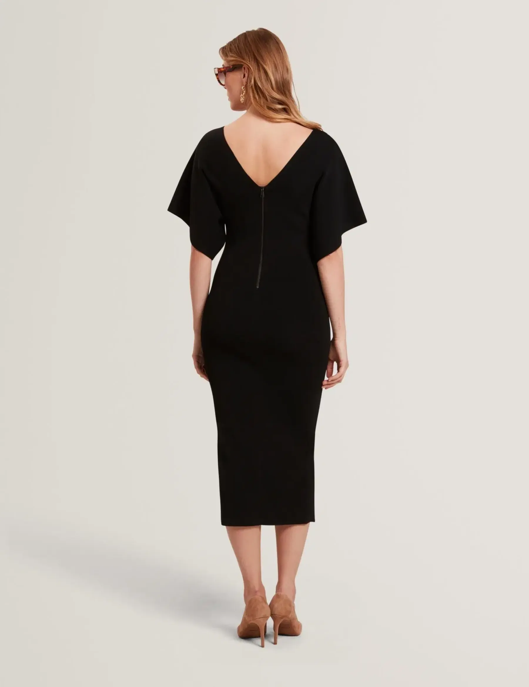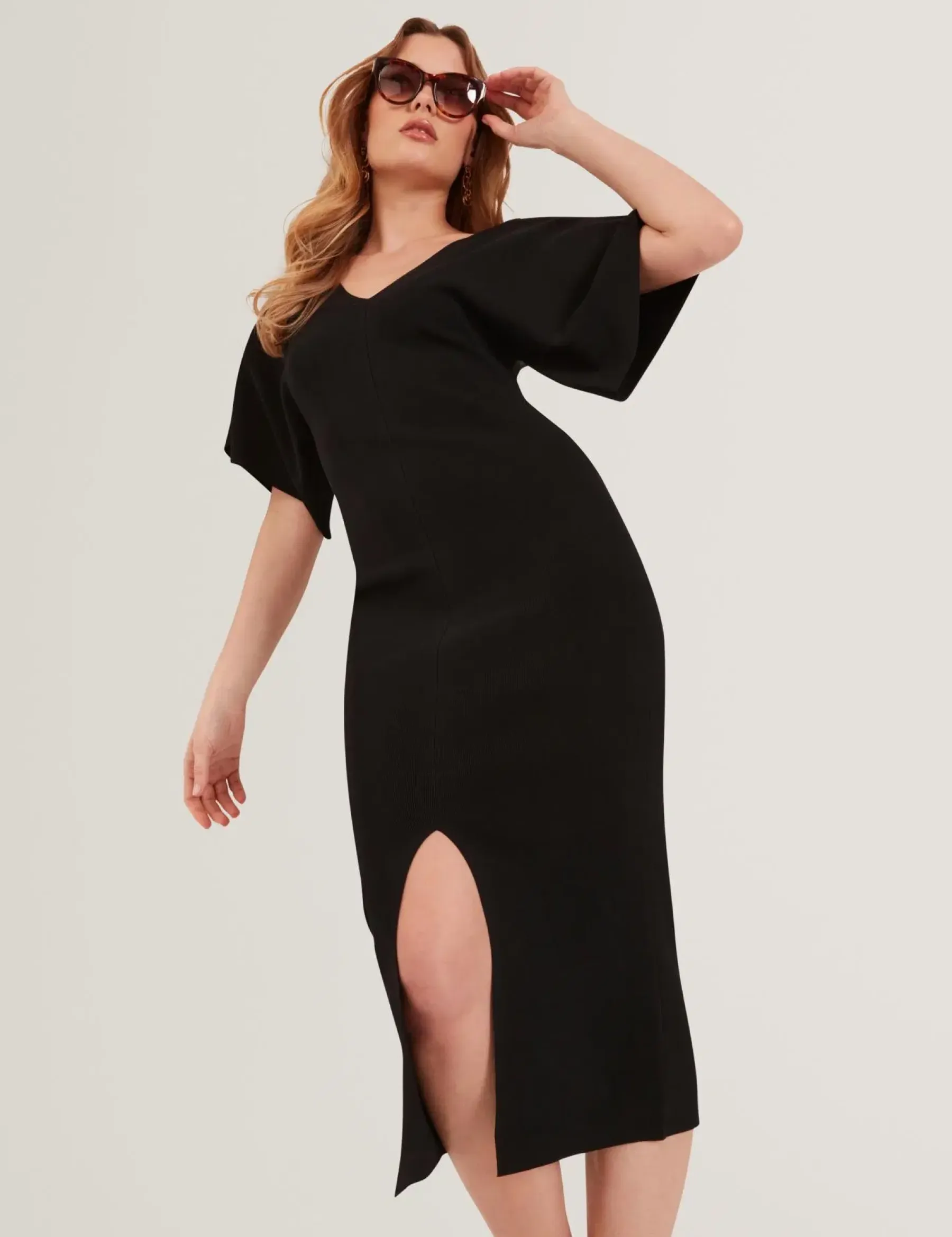 Midi mittainen neulemekko, jossa v-pääntie ja upeat hihat.