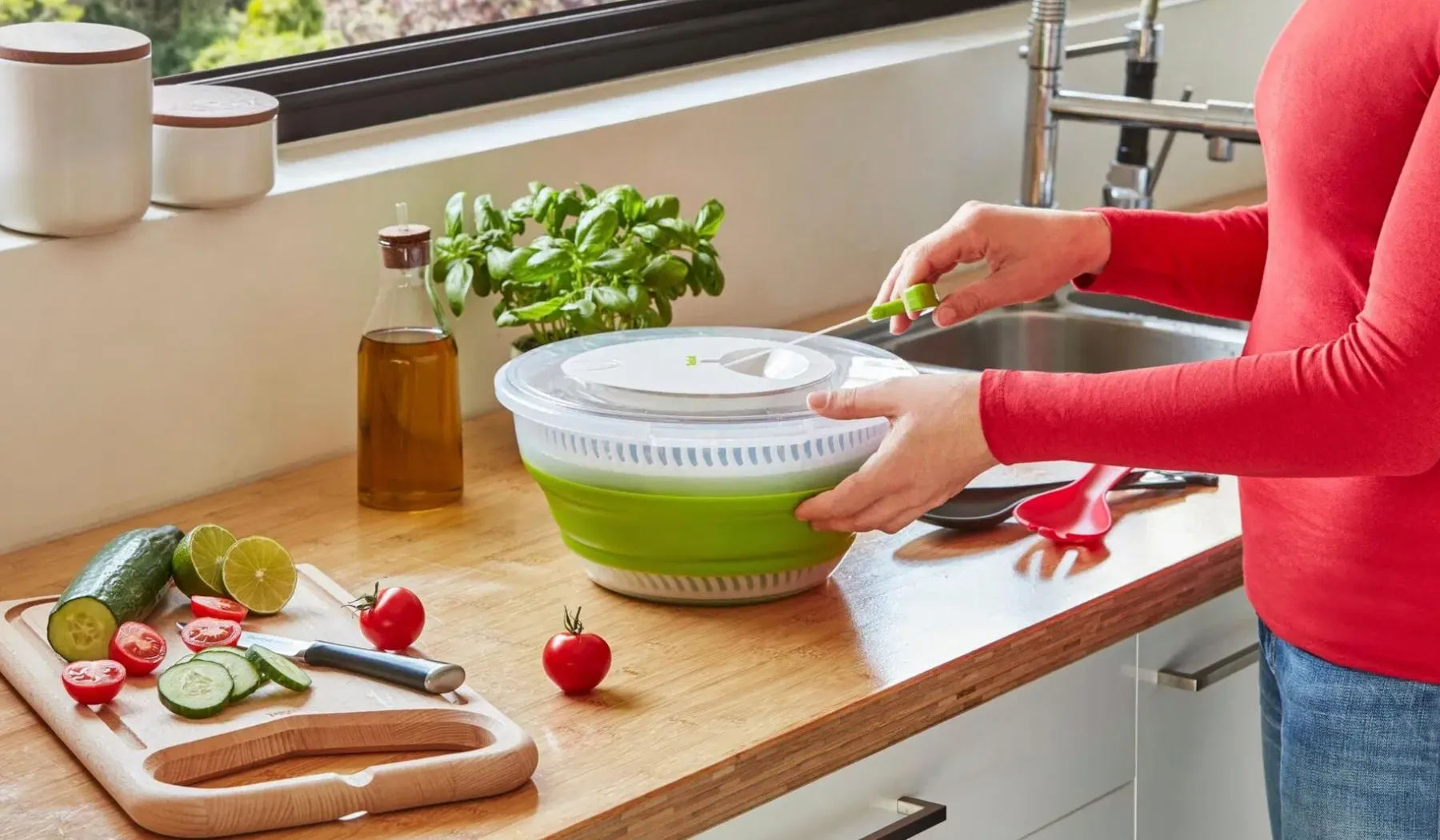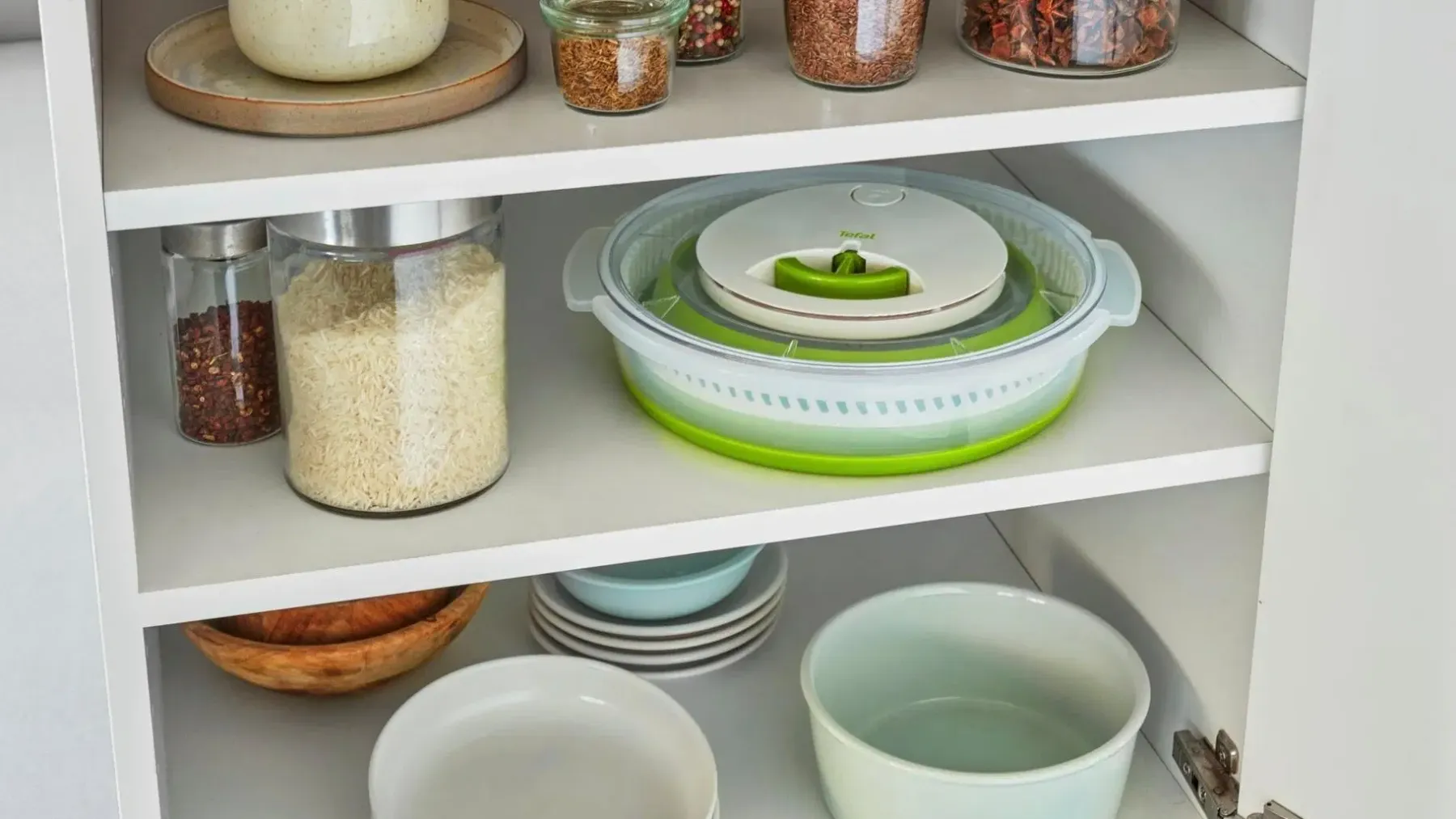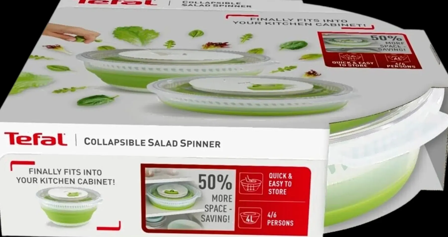 Tutustu Tefalin älykkääseen kokoon taittuvaan salaattilinkoon, joka helpottaa tuoreiden salaattien tarjoamista joka päivä. Käytännöllisen rakenteen ansiosta linko vie jopa 50 % vähemmän tilaa keittiössä – astia voidaan taittaa kokoon käytön jälkeen. Valmista terveellisiä, maukkaita salaatteja käden käänteessä. Liukumaton pohja pitää salaattilingon vakaasti paikallaan työtasolla käytön aikana. Kokoontaitettavan kulhon tilavuus on 4 litraa, joten voit helposti valmistaa salaattia 4-6 hengelle.