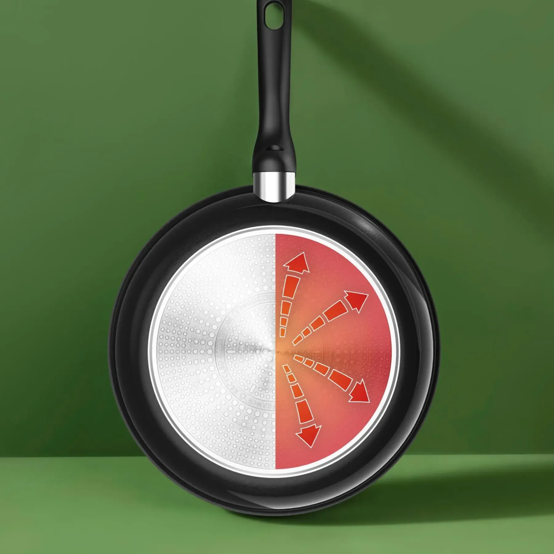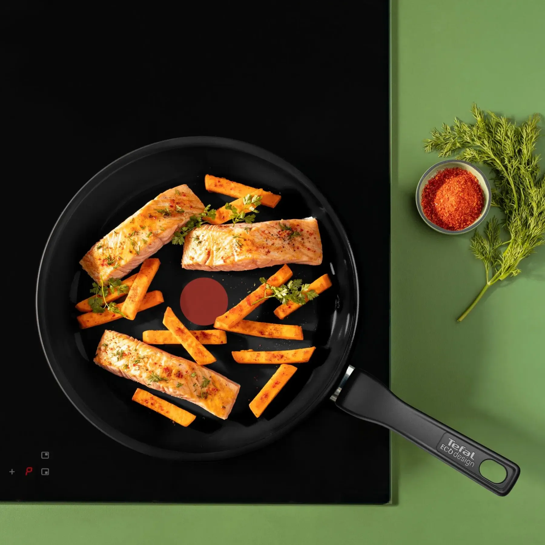 Turvallinen ja kestävä keraaminen tarttumaton pinnoite estää ruokaa tarttumasta pannuun kypsennyksen aikana, vaikka rasvaa tai öljyä käytettäisiin vain vähän tai ei ollenkaan. Pannussa on älykäs Thermo-Signal™-lämpötilailmaisin, joka vaihtaa väriä, kun lämpötila on täydellinen kypsennyksen aloittamiseen. Täydellinen tuoreiden ja terveellisten aterioiden valmistukseen. Renew on yhteensopiva kaikkien keittotasojen kanssa, mukaan lukien induktio. Renew-paistinpannussa ei ole tingitty tarttumattomuudesta eikä helppokäyttöisyydestä, joten sekä astian puhdistaminen että herkullisen ruoan valmistaminen on helppoa. Pannussa on tukeva bakeliittikahva. Turvallinen käyttää, ei sisällä PFOA-yhdisteitä, lyijyä eikä kadmiumia. Uuninkestävyys 175 °C.