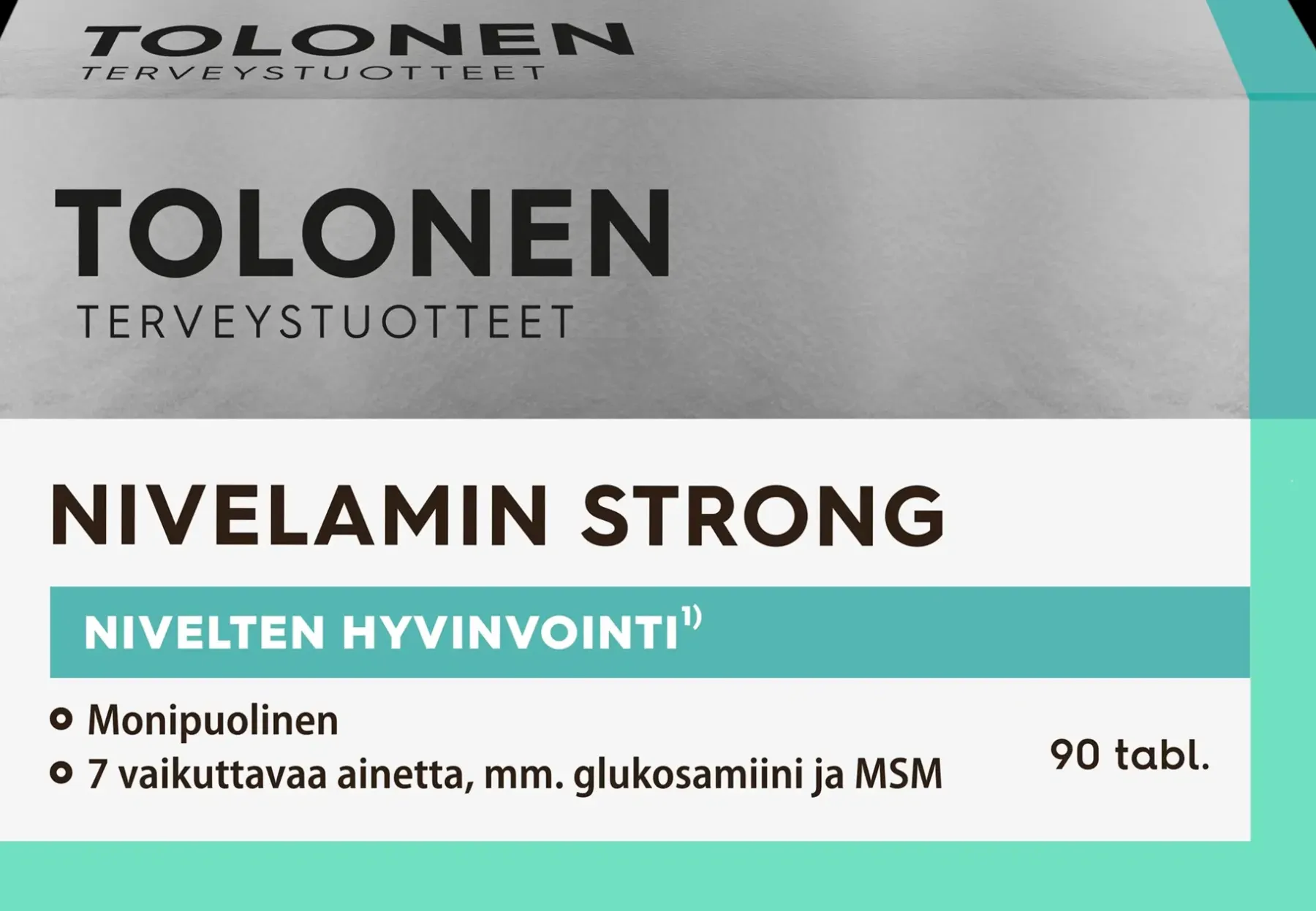 Hyvinvointia nivelille! Tolonen Nivelamin Strong on monipuolinen valmiste ja se sisältää seitsemää vaikuttavaa ainetta. Glukosamiini, kondroitiinisulfaatti, MSM, kurkuma, inkivääri, kupari sekä C- ja D-vitamiinit pitävät yllä nivelterveyttä ja nivelten liikkuvuutta. Suositeltava vuorokausiannos 1-2 tablettia. Ei suositella raskaana oleville. C-vitamiini edistää normaalia kollageenin muodostumista rustojen normaalia toimintaa varten. Kupari edistää sidekudosten pysymistä normaalina. C-vitamiini ja kupari edistävät solujen suojaamista hapetusstressiltä. Ravintolisä ei korvaa monipuolista ja tasapainoista ruokavaliota eikä terveitä elämäntapoja. Kehitetty Suomessa!