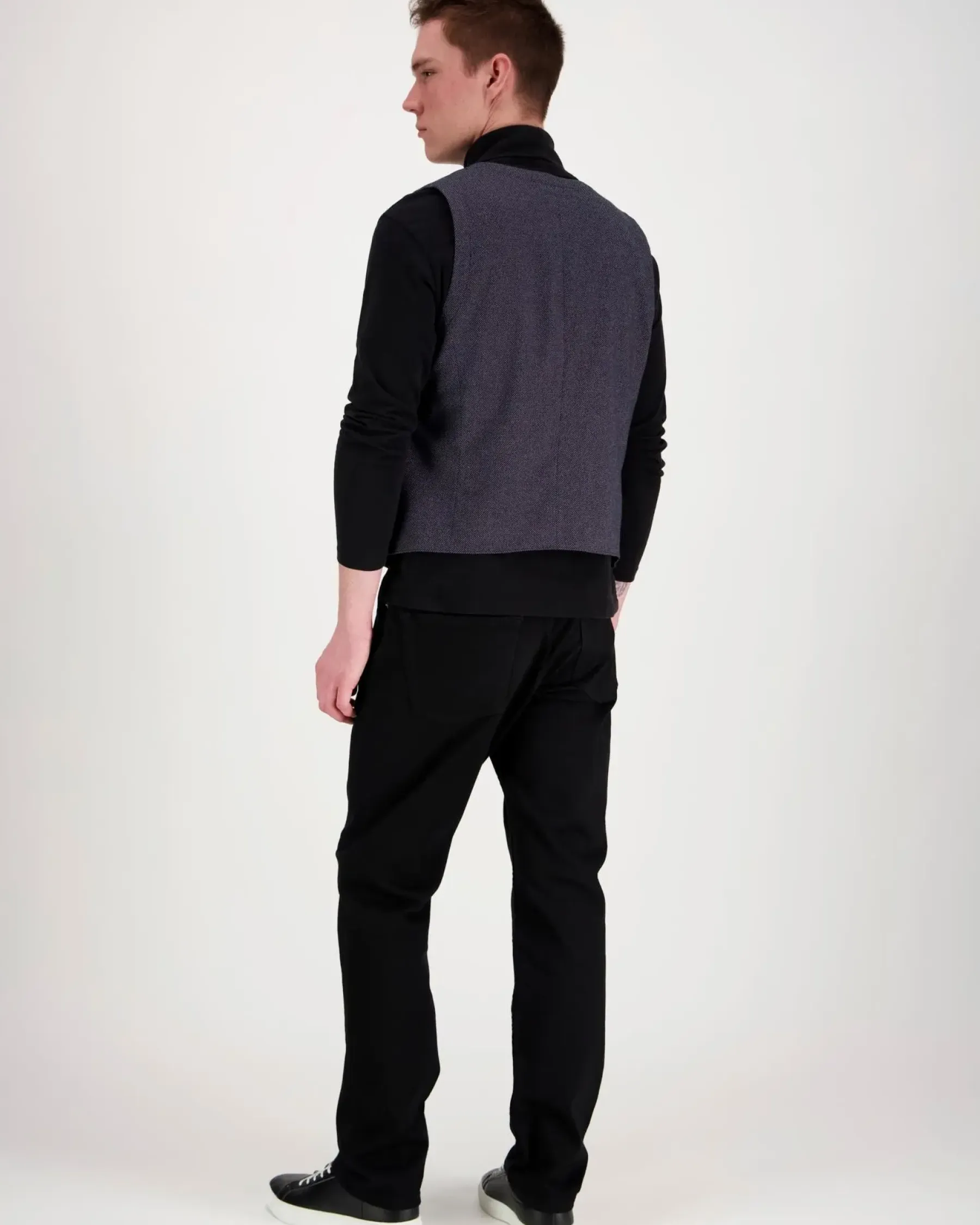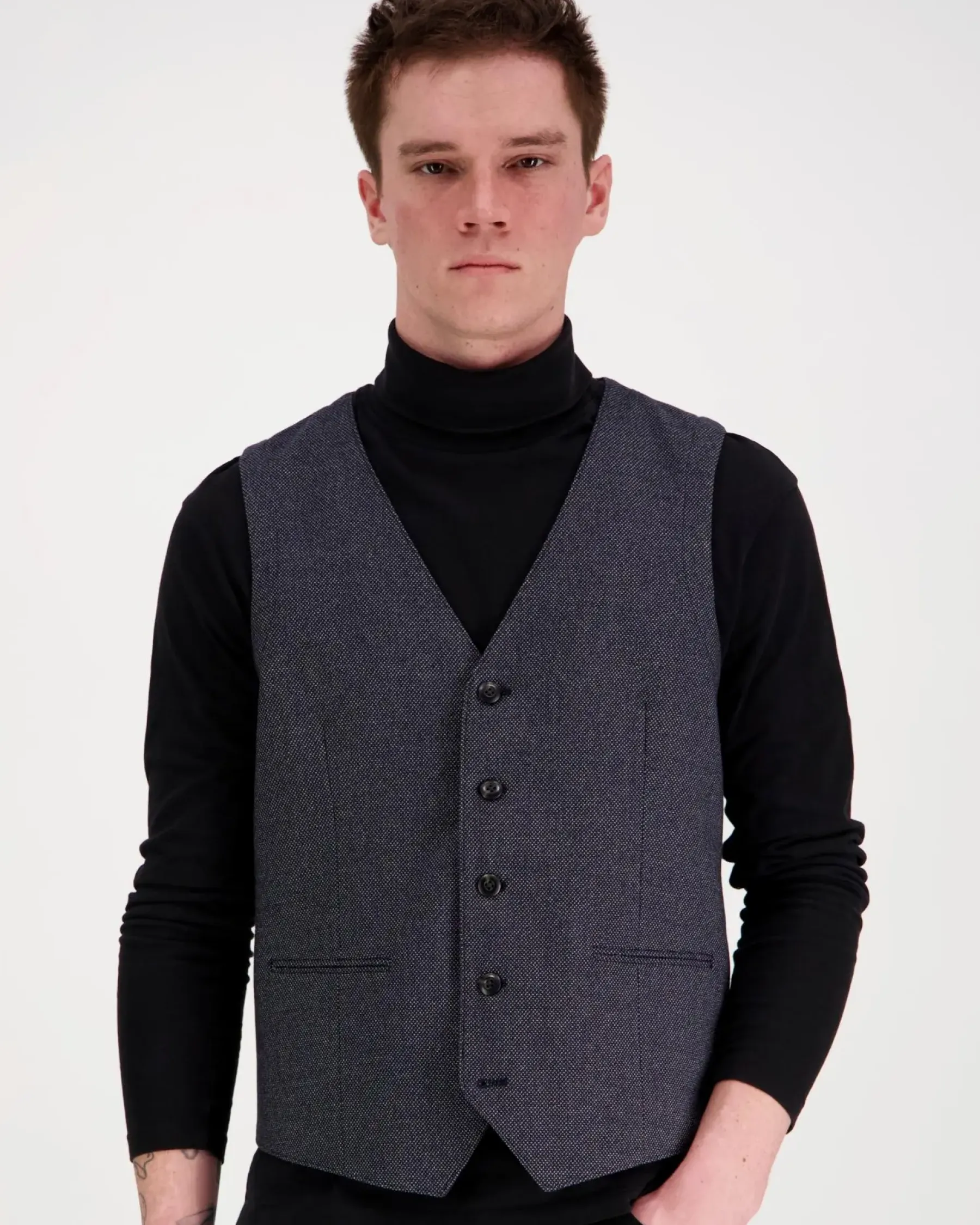 Miesten liivi. Edessä napit, napinläpitaskut. Ohut vuori. Materiaali joustaa hieman.