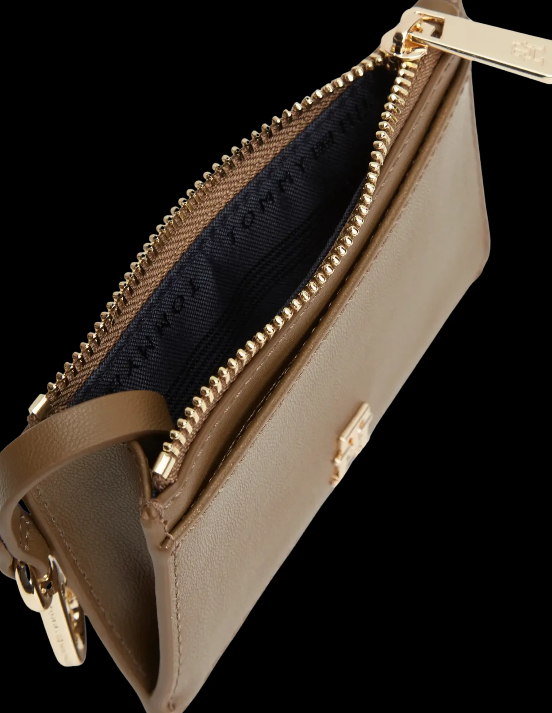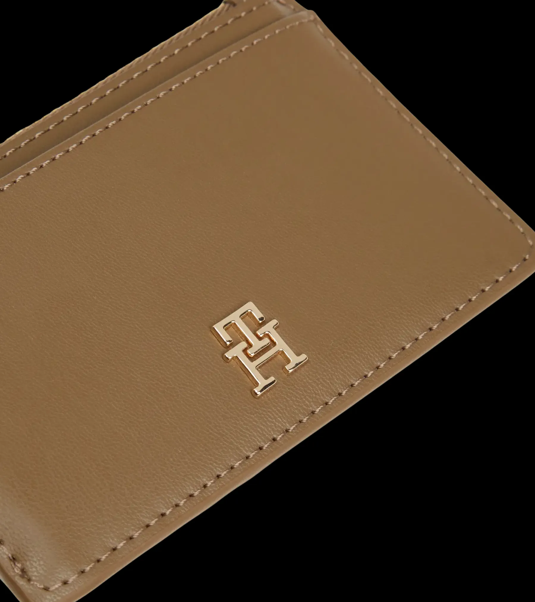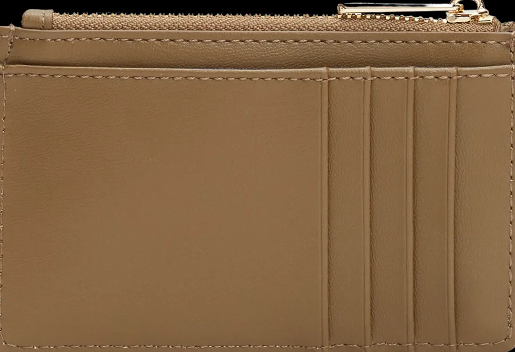 Keinonahkaisessa pikkulompakossa on takana 4 korttitaskua ja edessä avotasku. Keskellä vetoketjullinen tasku, jossa myös avainketju.